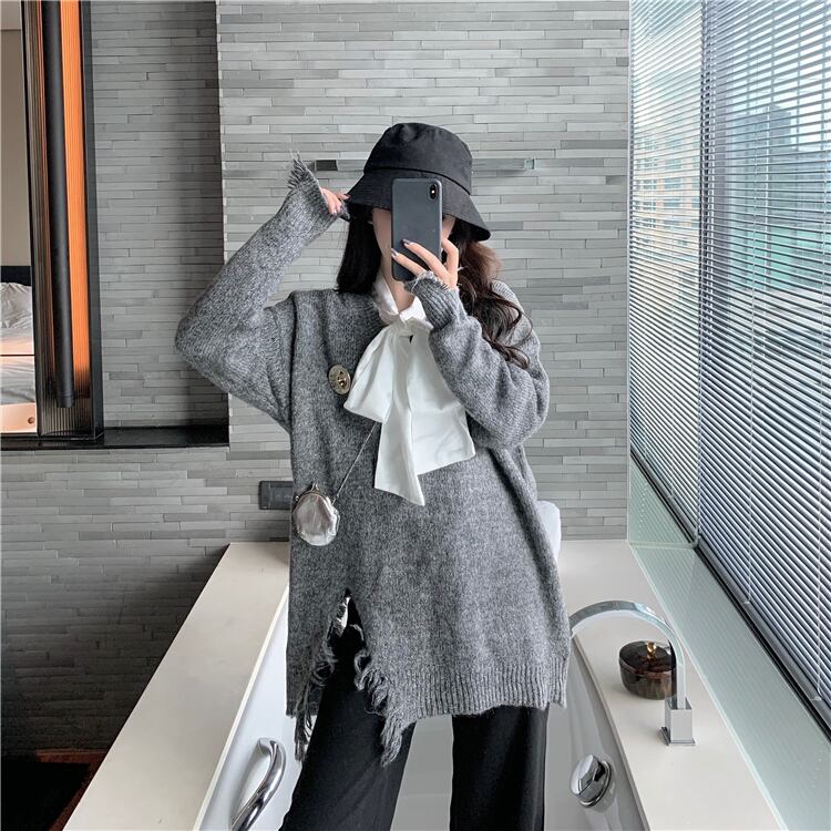 セーター女性のルーズウェア2020新しいプルオーバー長袖トップス春スタイル怠惰な風ミドル丈セーター 香港の味60420297574