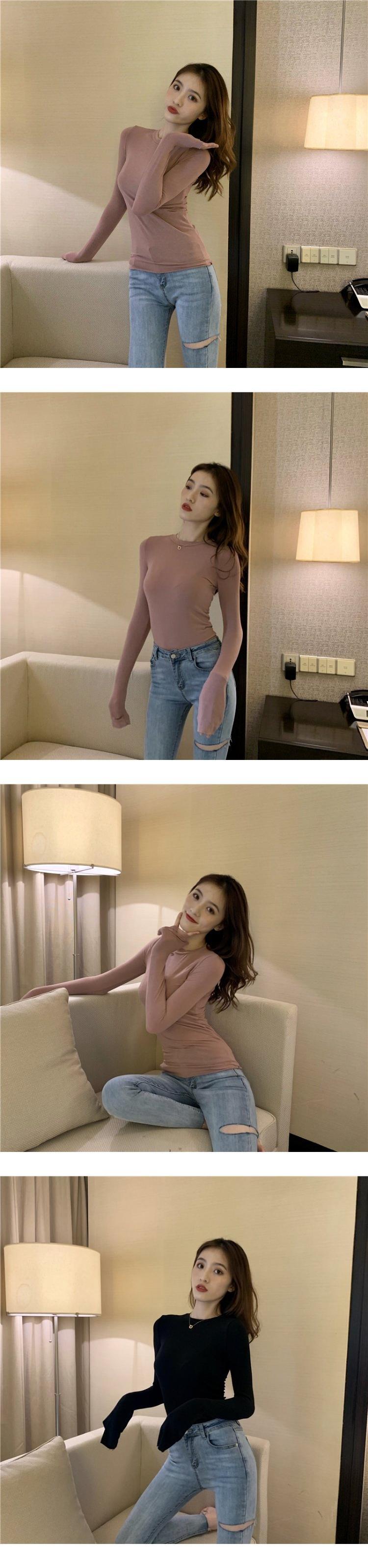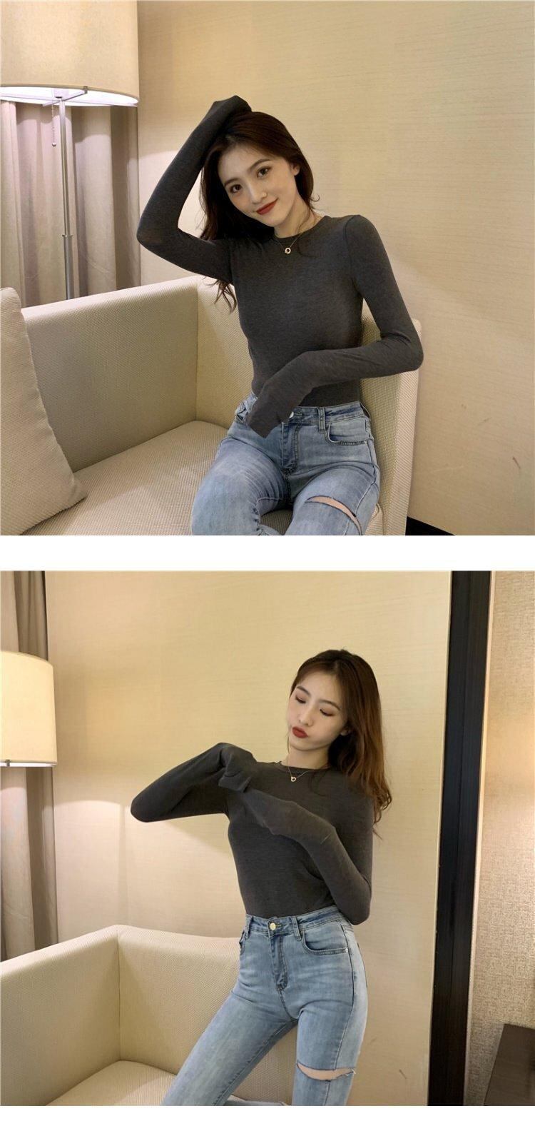 レイジースタイルブラックボトムスシャツウィメンズスプリングニュー2020スリムフィットニットセーターフード付き長袖トップス 香港の味75447021111