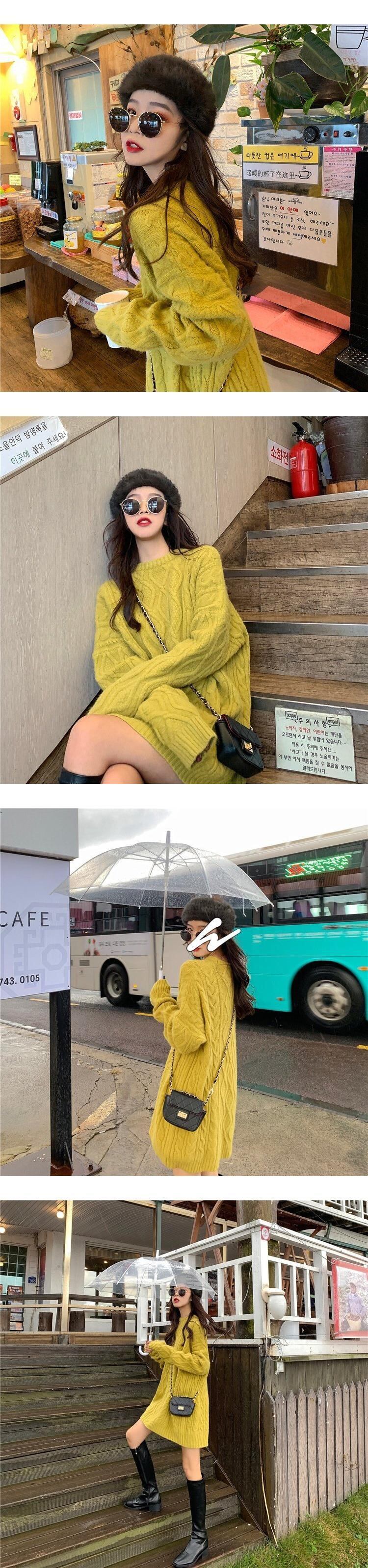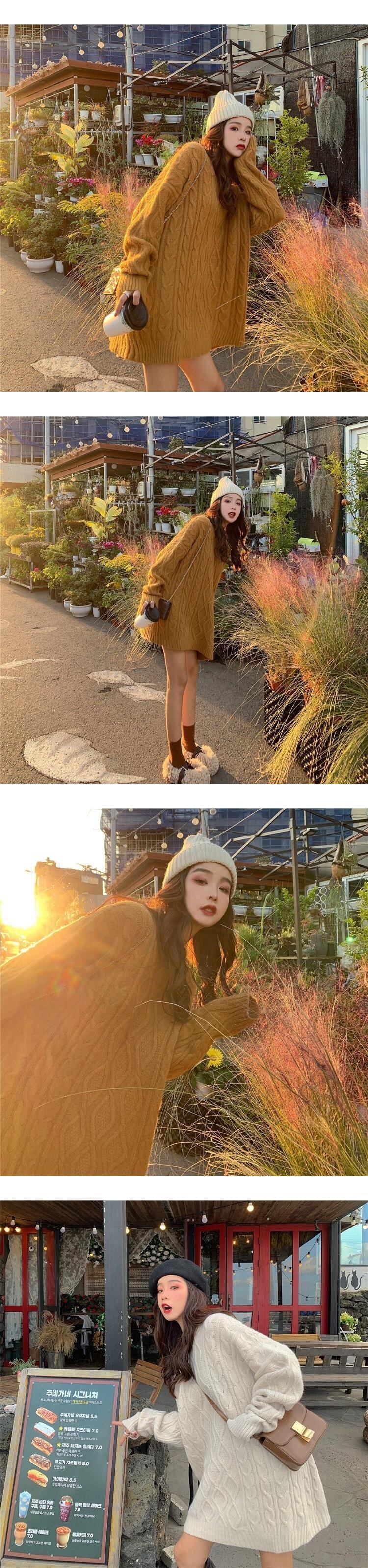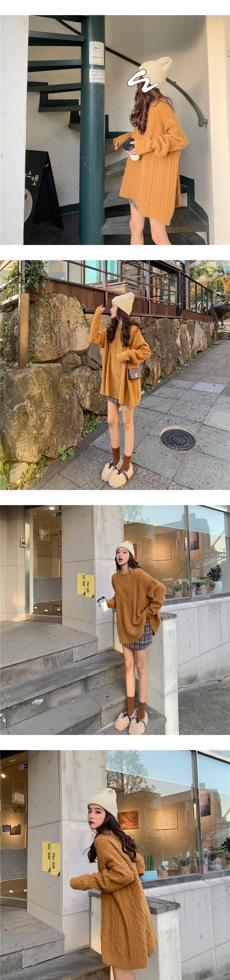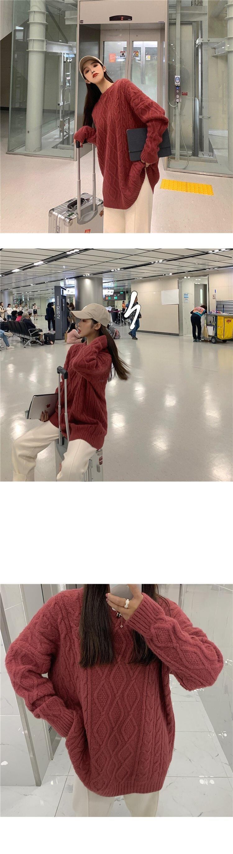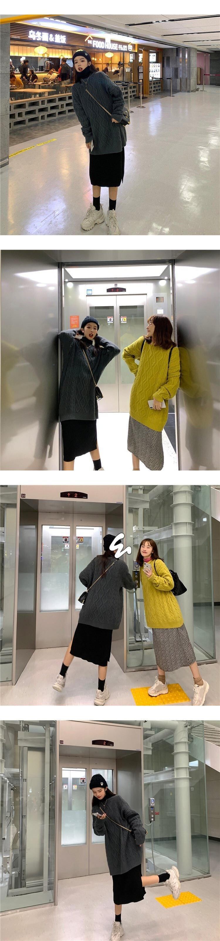 ヘンプ柄厚手プルオーバーセーター長袖トップスレディース秋冬ロングセクション2019新作ルーズセータージャケット 香港の味49937438355