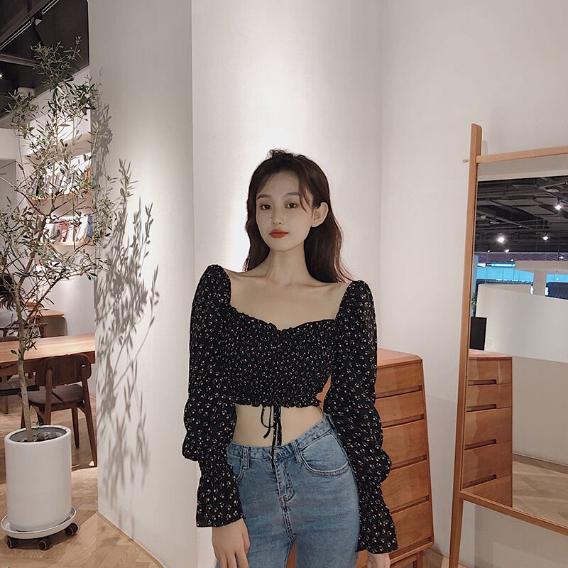 フローラルシフォンシャツ トップス レディースオータムスリムショートクロップド ロング 秋物 花柄 香港の味98172586454