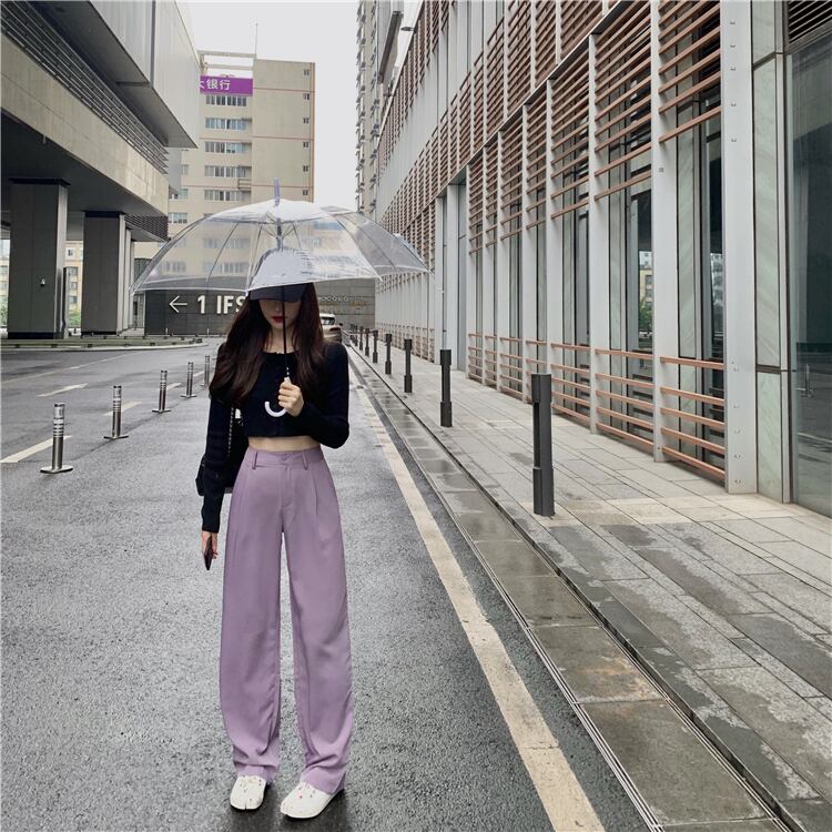 ワイドレッグパンツ女性のハイウエストルーズドレープスーツパンツ2020新しい夏のスリムカジュアルパンツモップストレートパンツ 香港の味73774579016