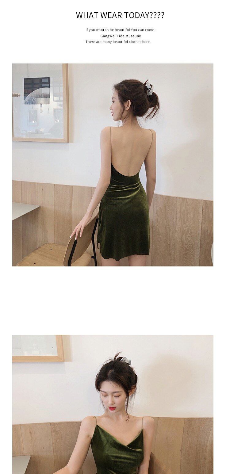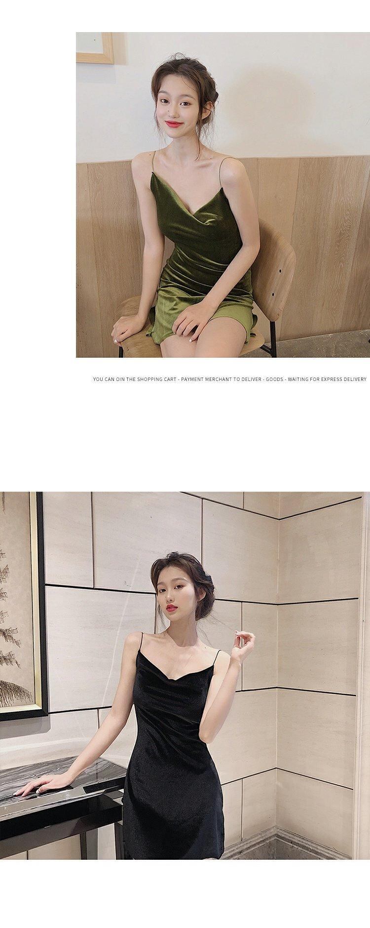 ベルベットセクシースプリットスリングドレス女性2020年春新しいネット赤気質Vネックハイウエストスリムスカート 香港の味83241878361