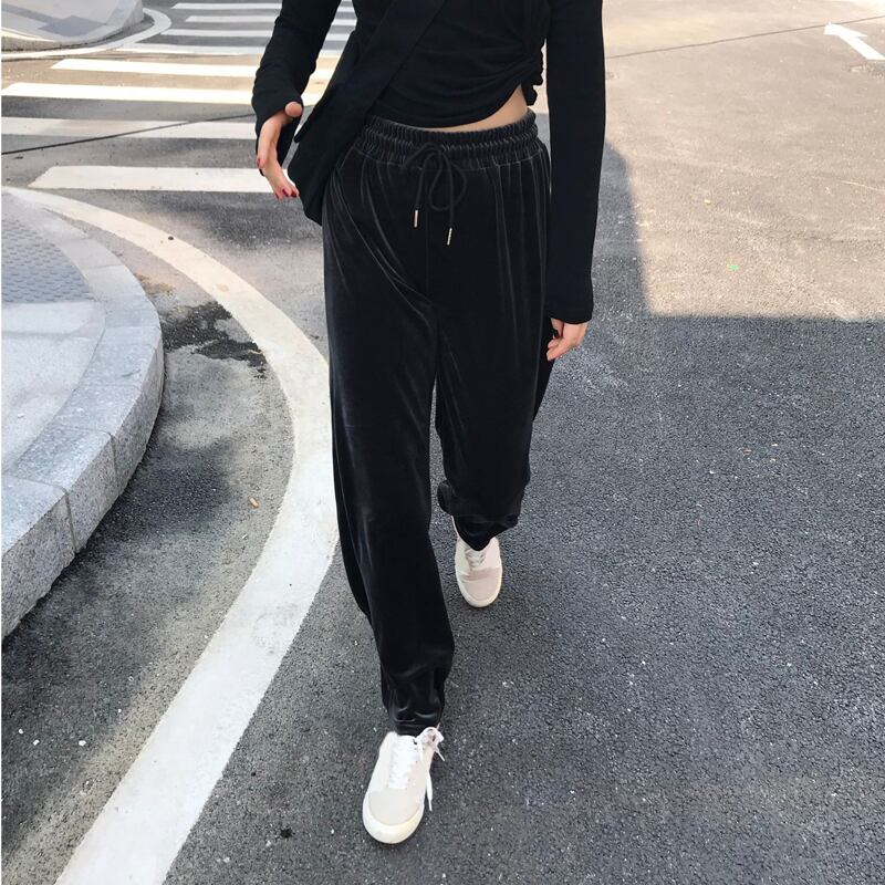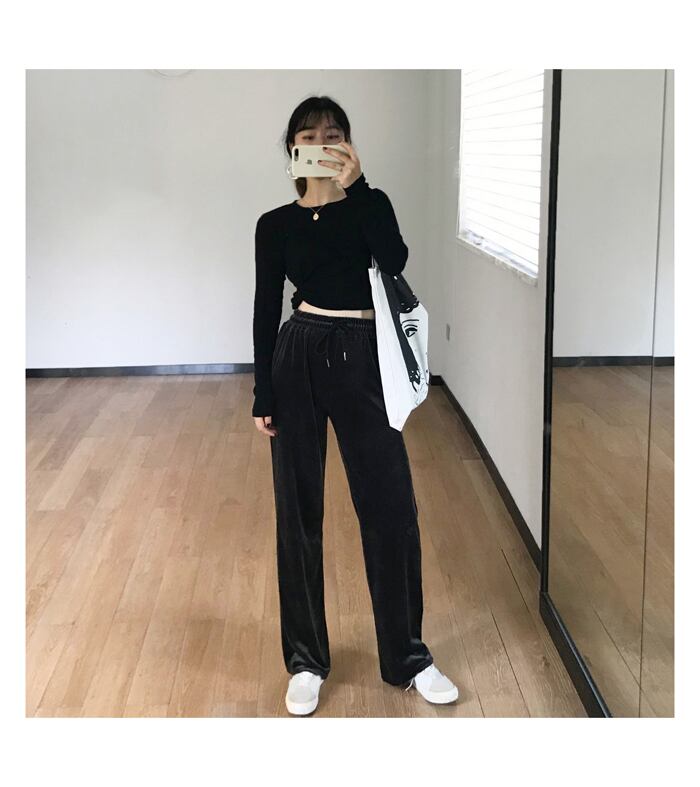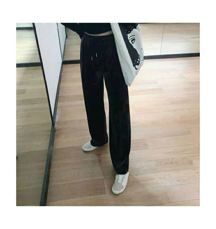 パンツ女性2020新しいブラックゴールドのベルベットのドレープルーズカジュアルパンツ春ストレートパンツハイウエストワイドレッグパンツ 香港の味33280661733