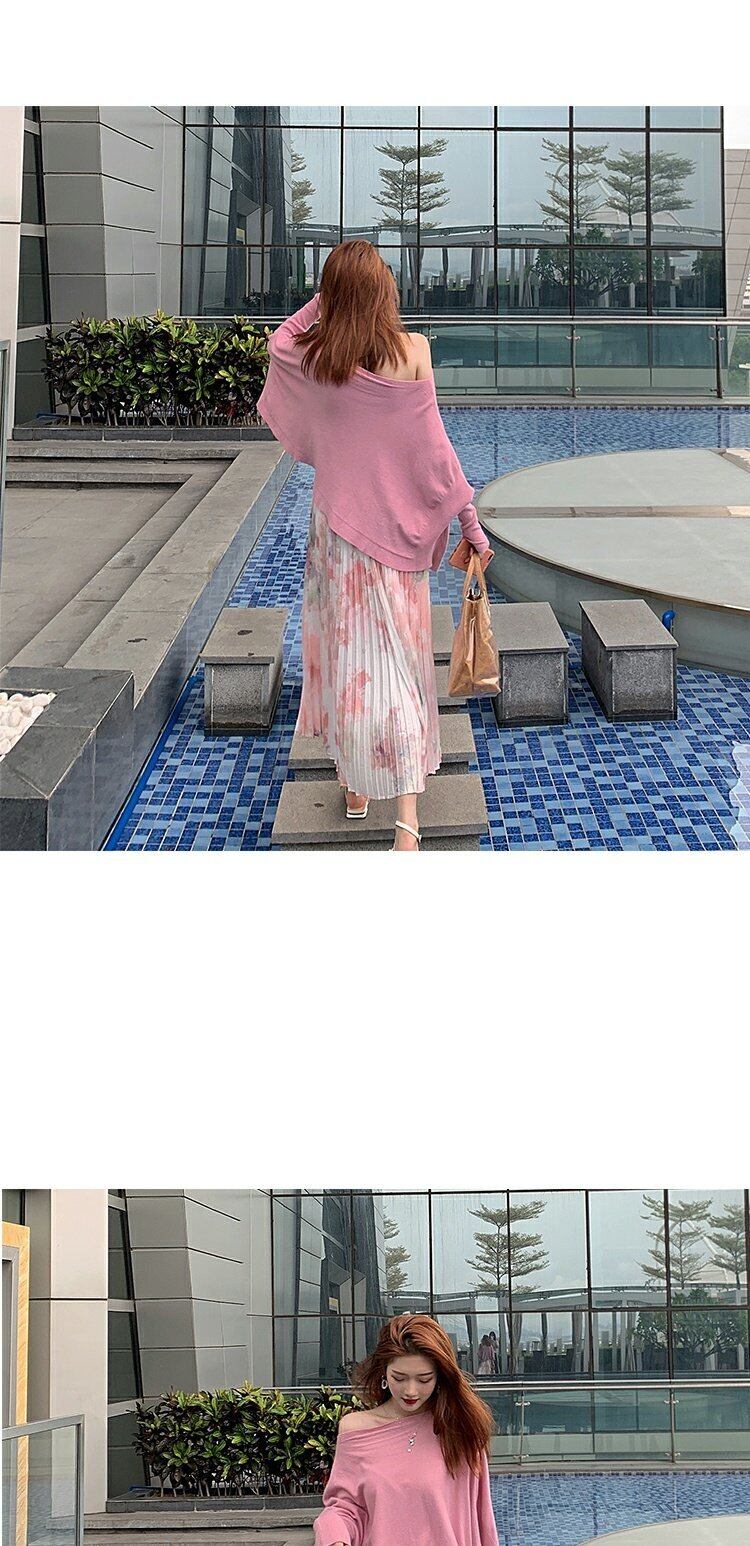 色:ピンクの汚れたスカート,グリーンスマッジスカート,ローズピンクのセーター,白いセーター