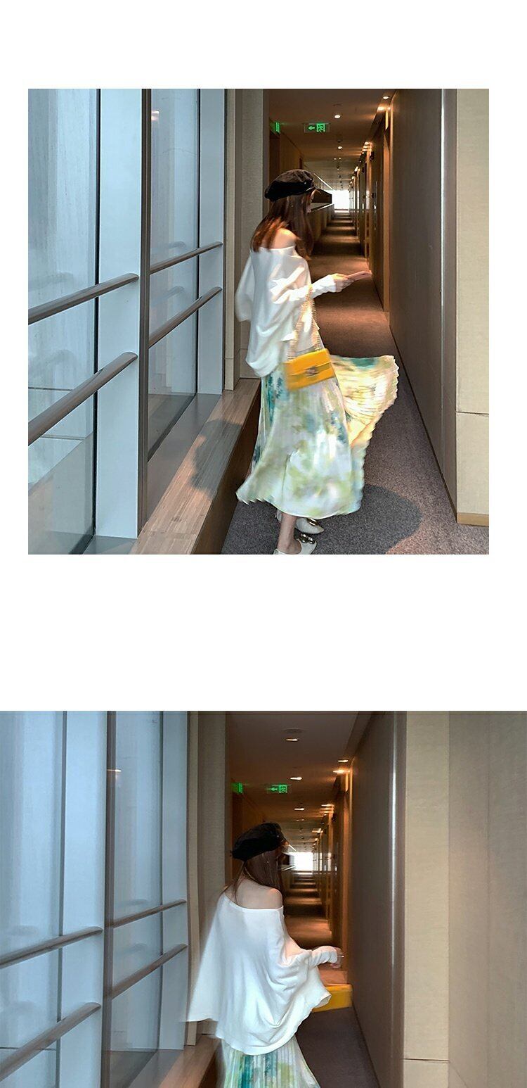 スマッジハイウエストプリーツスカート女性スリムスカート新2020春カジュアルミドル丈スカートAラインスカート 香港の味46146687780