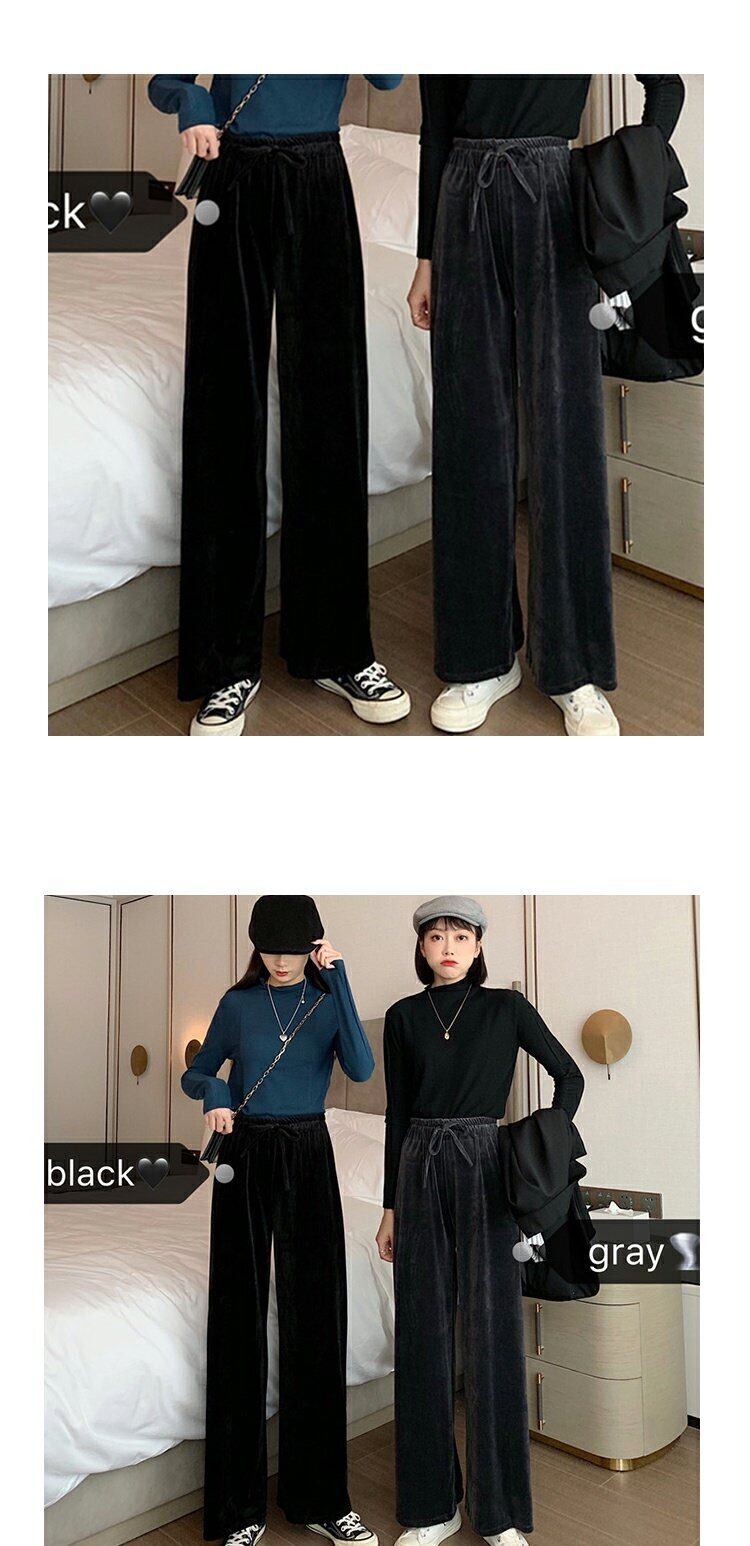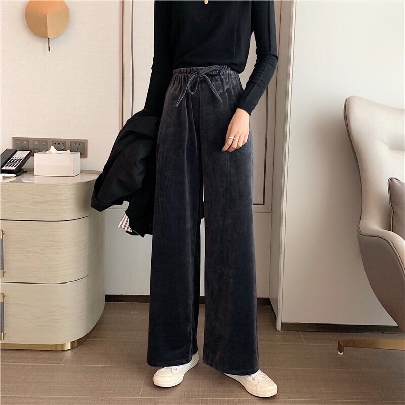 ワイドレッグパンツ女性の夏2020新しい黒のベルベットパンツハイウエストスリムパンツ緩いストレートパンツカジュアルパンツ 香港の味68778637614