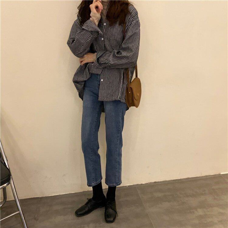 春のレトロなストライプの長袖シャツトップ女性2020新しいバージョンの緩いデザインニッチシャツジャケット 香港の味22596221770