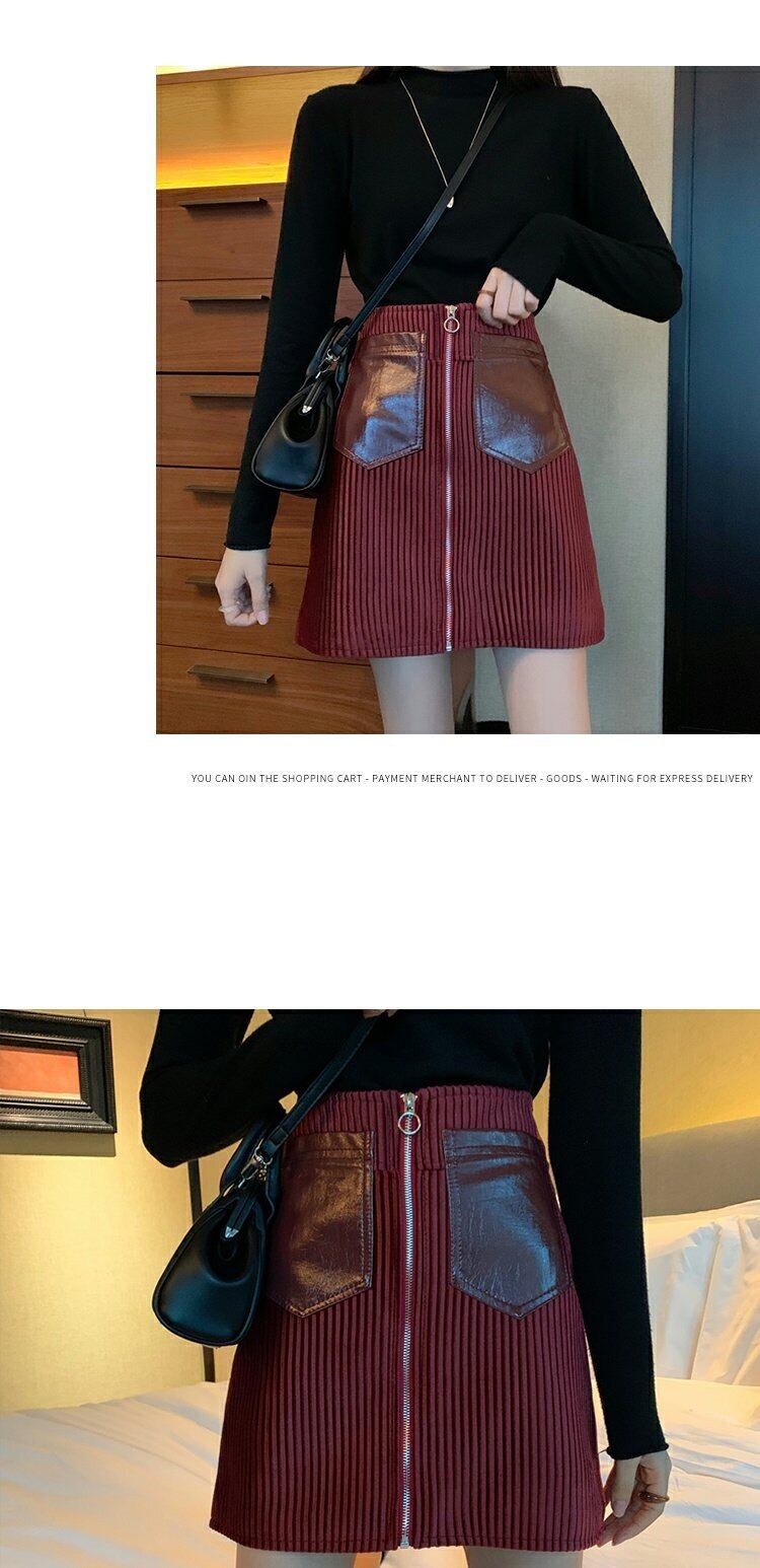 コーデュロイステッチスカート春女性2020新しいショートスカートハイウエストAラインスカートブラックオールマッチヒップスカート 香港の味62111071926