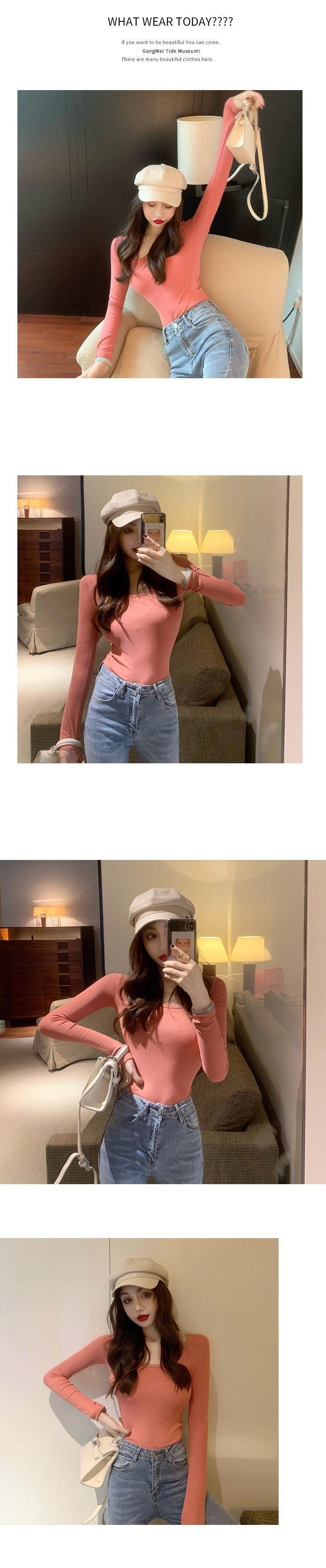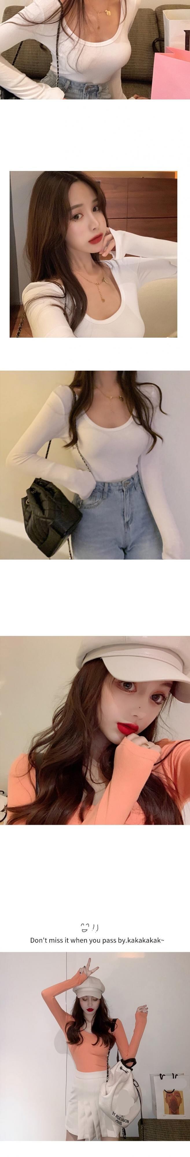 ネットセレブ長袖Tシャツレディース2020年新作春スリムトップス無地ボトムスシャツイントレンドにご注意ください 香港の味30874375571