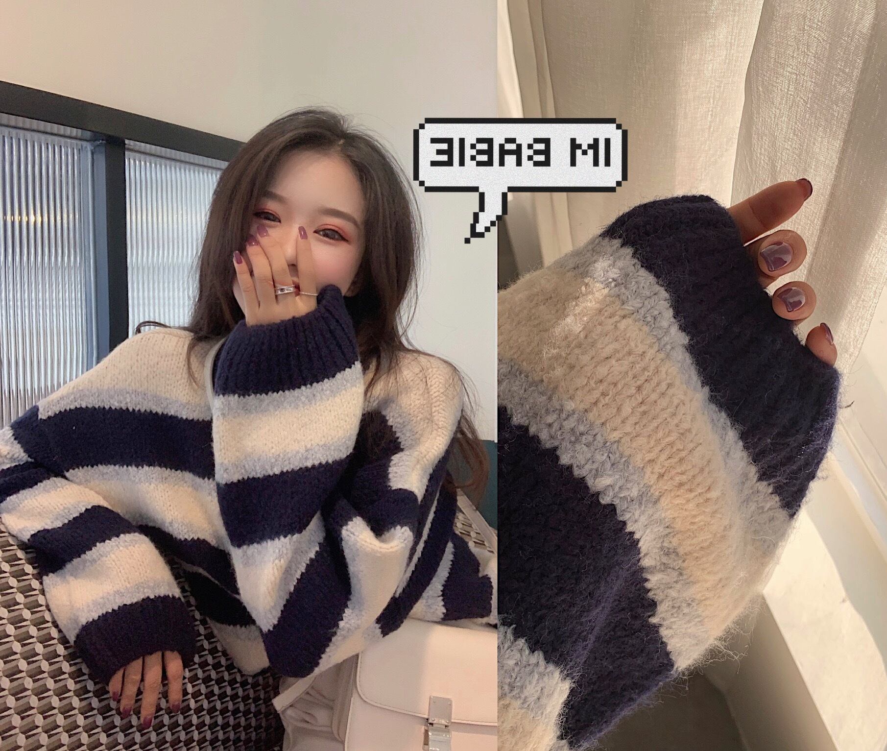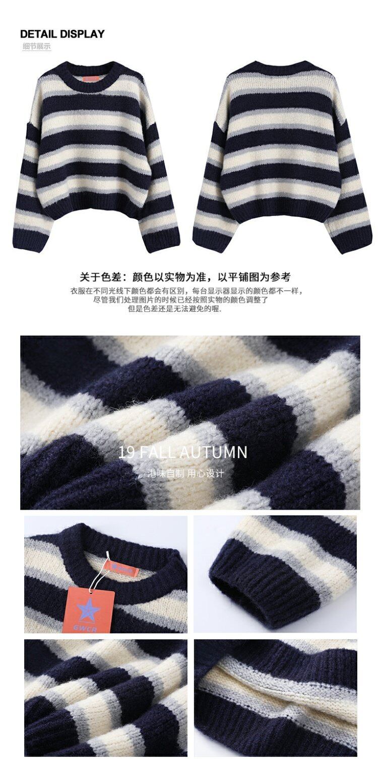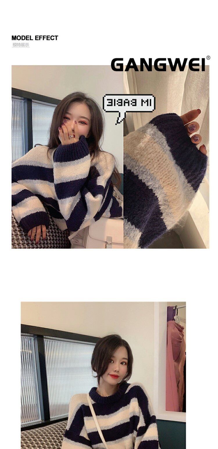 ニットセーターブラウス2020新しい春のコントラストカラールーズストライププルオーバーイントレンディな怠惰なセータージャケット 香港の味23592153091