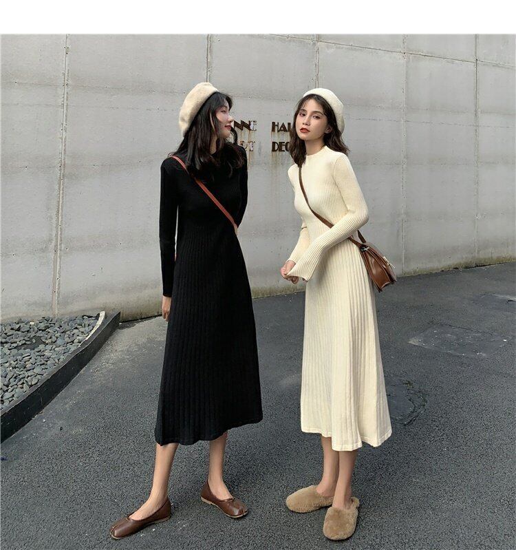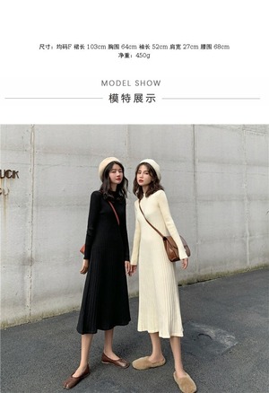 2019新しいハーフハイカラー長袖ニットドレス女性の秋と冬のミドル丈スリム気質ベーススカートトレンド 香港の味25849145776