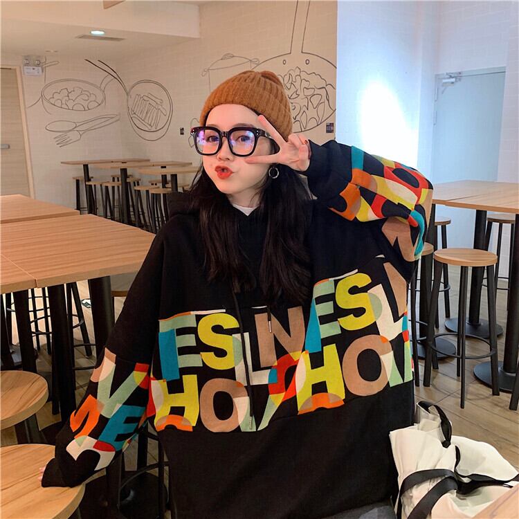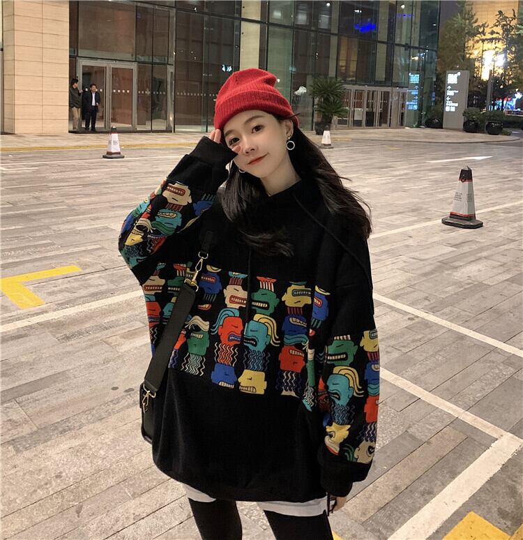 セーター2019新しい女性のルーズな漫画のプリントプルオーバー長袖トップス秋と冬プラスベルベットフード付きインタイド 香港の味72517619461
