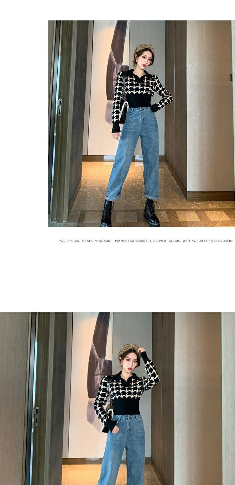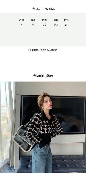 Vネックチェック柄ウエストボトミングセーターレディースプルオーバースリムショートインナージャケット2020年春新作セーター 香港の味33844193826