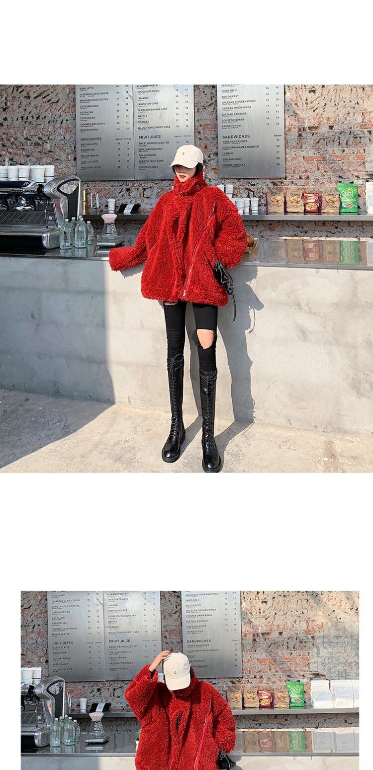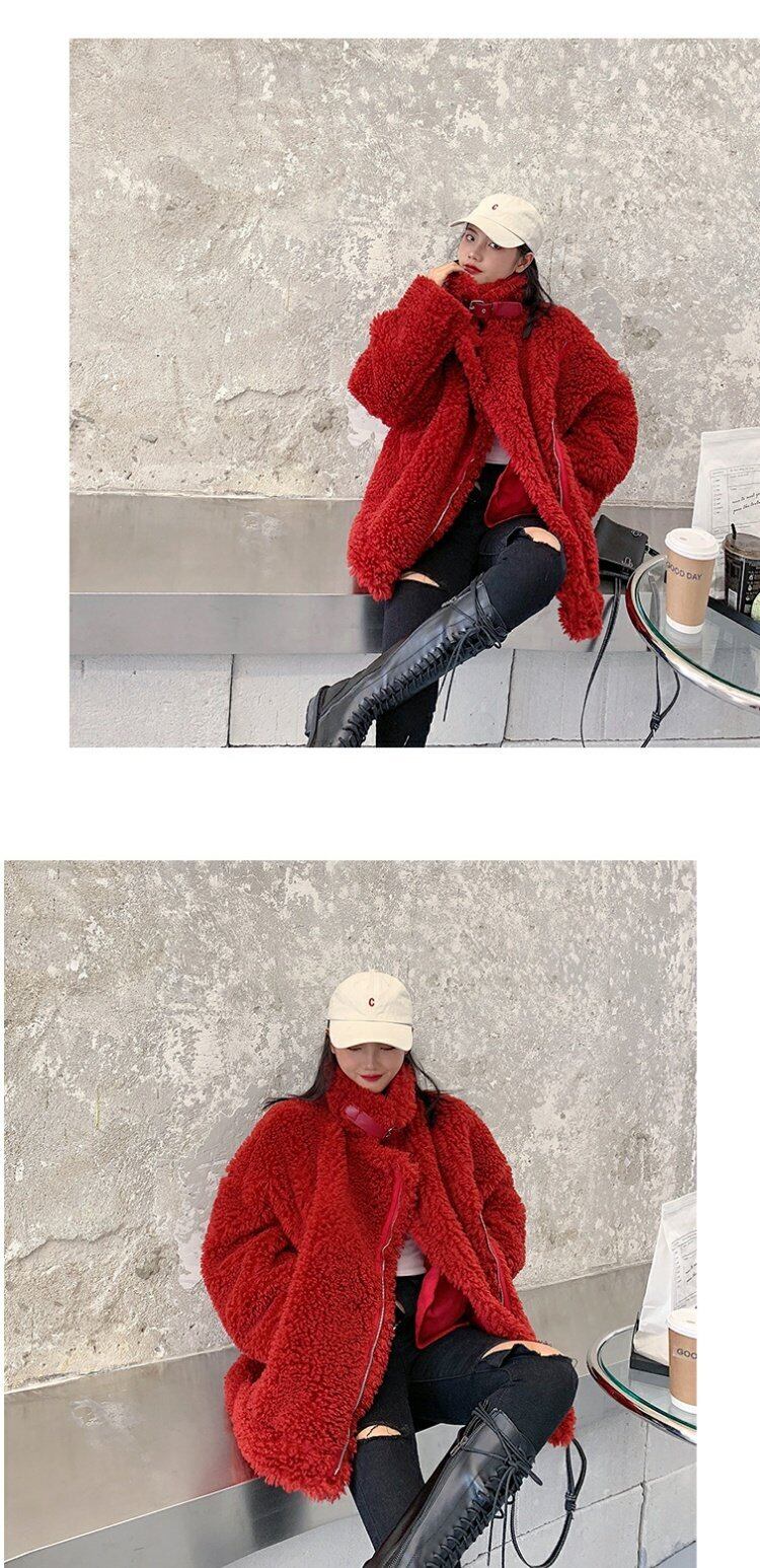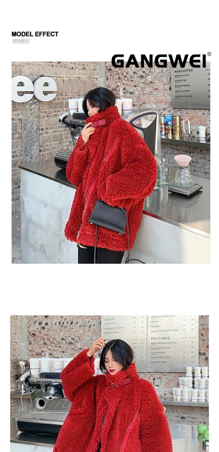 模造ラムウールコート女性2019新しい秋と冬の野生の厚いウールのオートバイのジャケットルーズコットンコート 香港の味75347192294