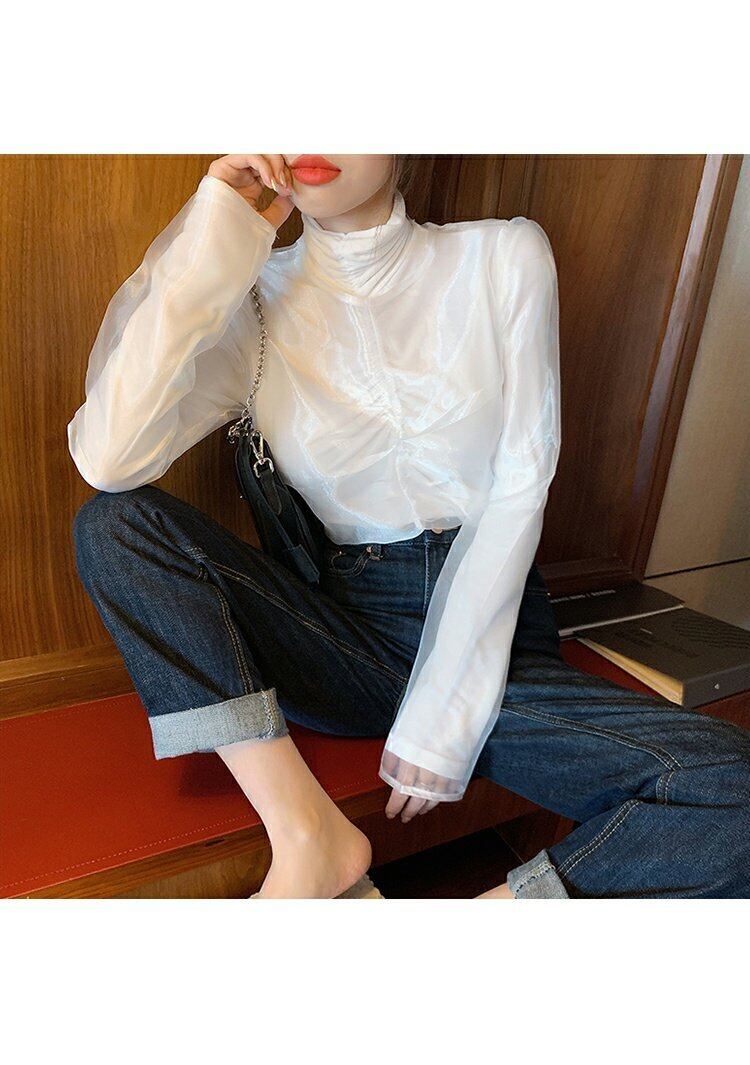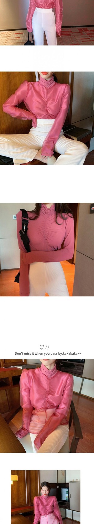 2019新しいeignスタイルのバブルネット糸長袖ハイネックTシャツレディーススリムボトミングシャツレトロシャツ秋冬 香港の味15918971730