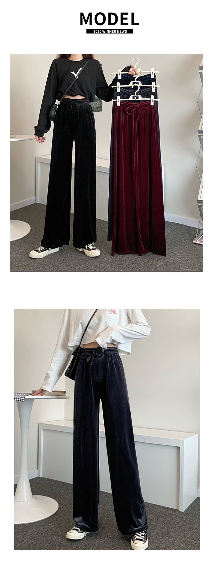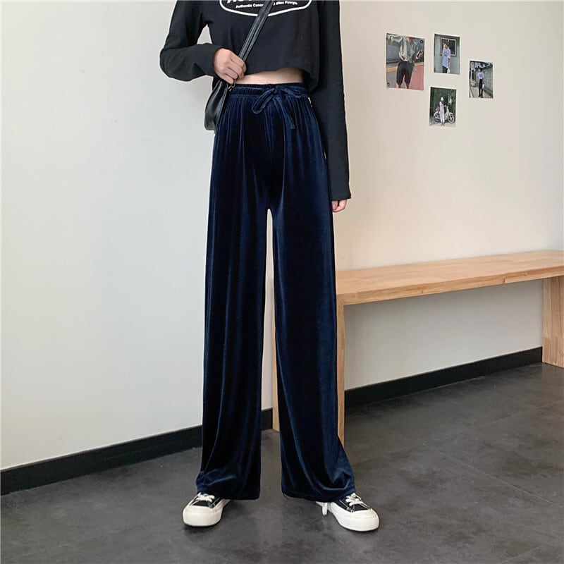 ゴールドベルベットパンツ レディースルーズスタイルスタンダードオータムウィンターハイウェストウェストカジュアル薄手 レトロ 秋物 冬物 香港の味77130324081