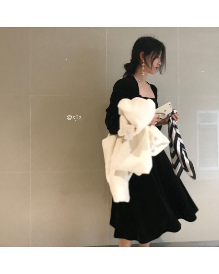 ブラックドレス スタイルオータムカラーウェストスカート 秋物 スクウェア 香港の味4254667709
