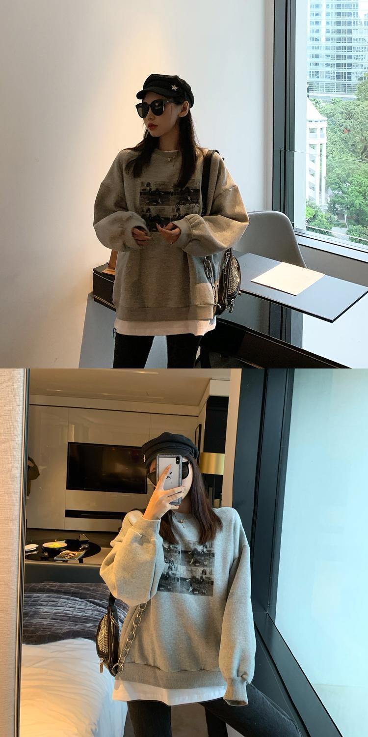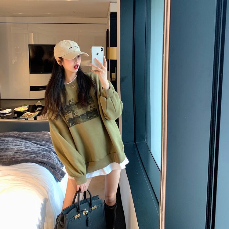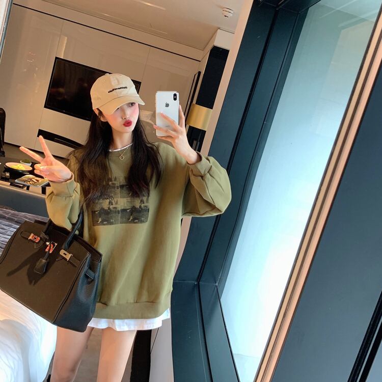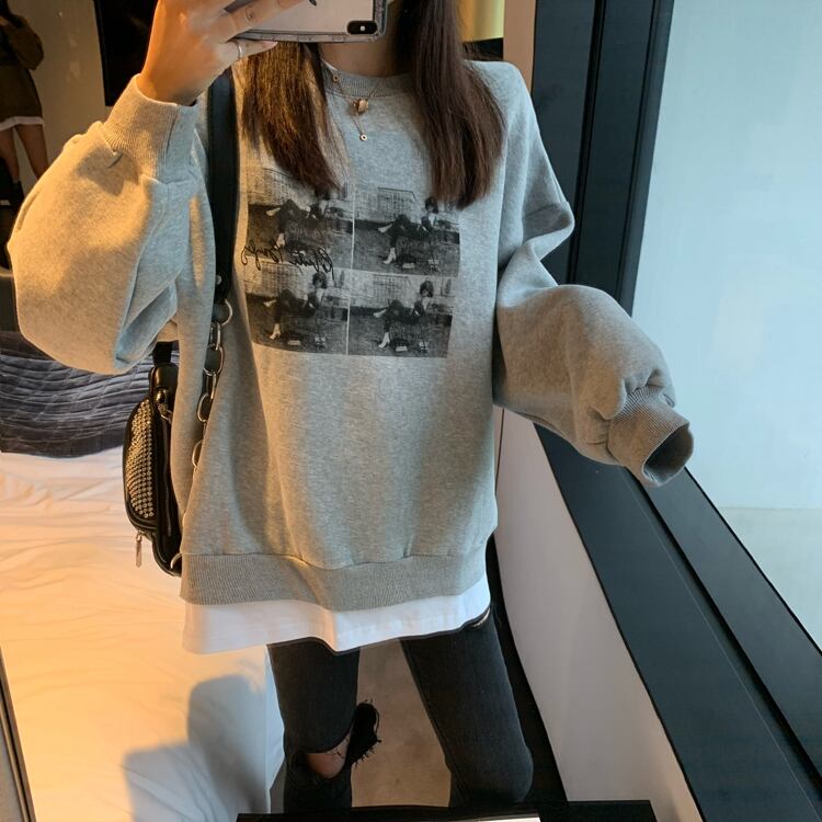 セーター レディースオータムウィンターラウンドネックプルオーバー プリントルーズスタンダードトップス ロング レトロ 秋物 冬物 Oネック 香港の味54933000980