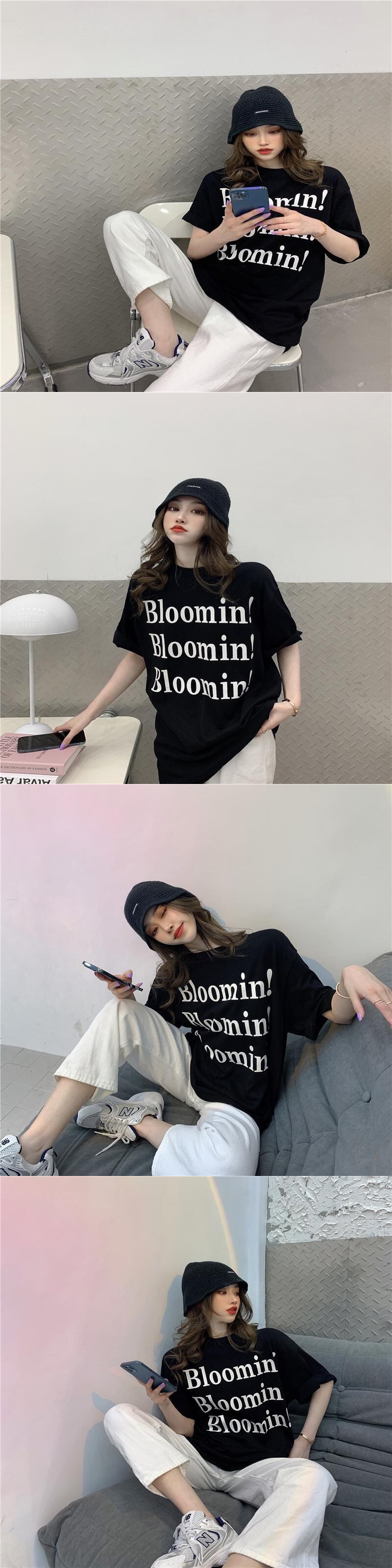 Tシャツ シャツ スタイルルーズプリントロングスプリングカジュアルトップス 春物 香港の味75935129597