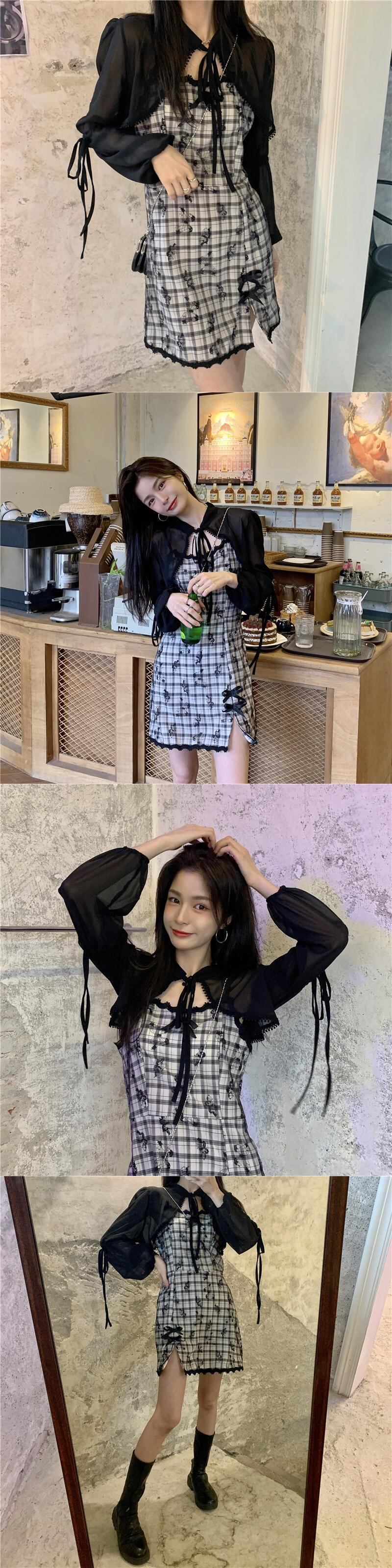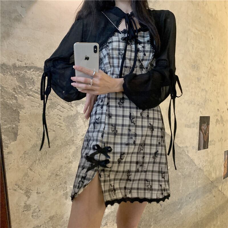 スカート スタンダード格子柄ウェストショートサマードレス レトロ 夏物 ピュア 香港の味71935283032