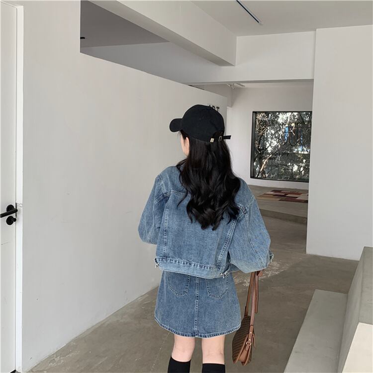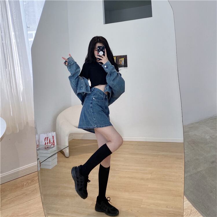 色:白いシャツ+ネクタイ8330#,デニムスカート5383#,デニムジャケット5382#