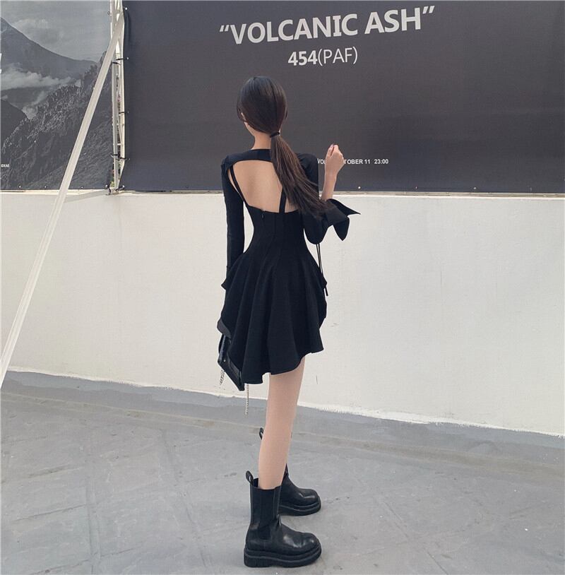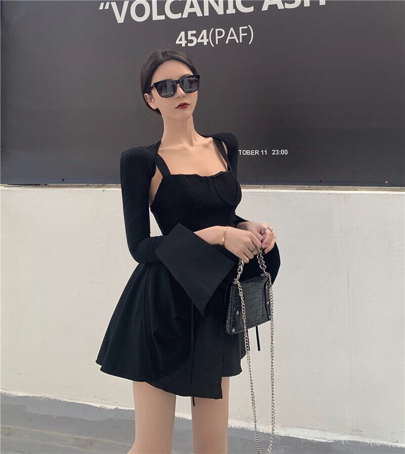 ドレス ウェストショートスカート サマーブラック 夏物 香港の味17213558598