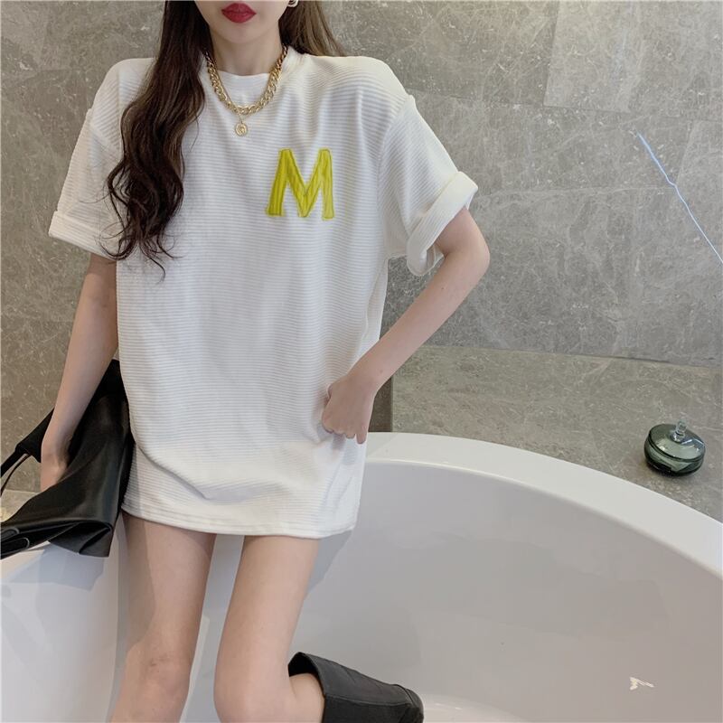 Tシャツ シャツ ルーズストライプロングサマーコーデュロイトップス 夏物 香港の味93981198762