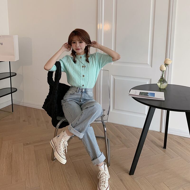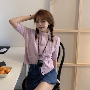 Tシャツ シャツ ソリッド カラーニットショートスプリングトップス 半袖 ハーフスリーブ 大人ガーリー スウィート キュート カジュアル 春物 ソリッドカラー 香港の味30927785779