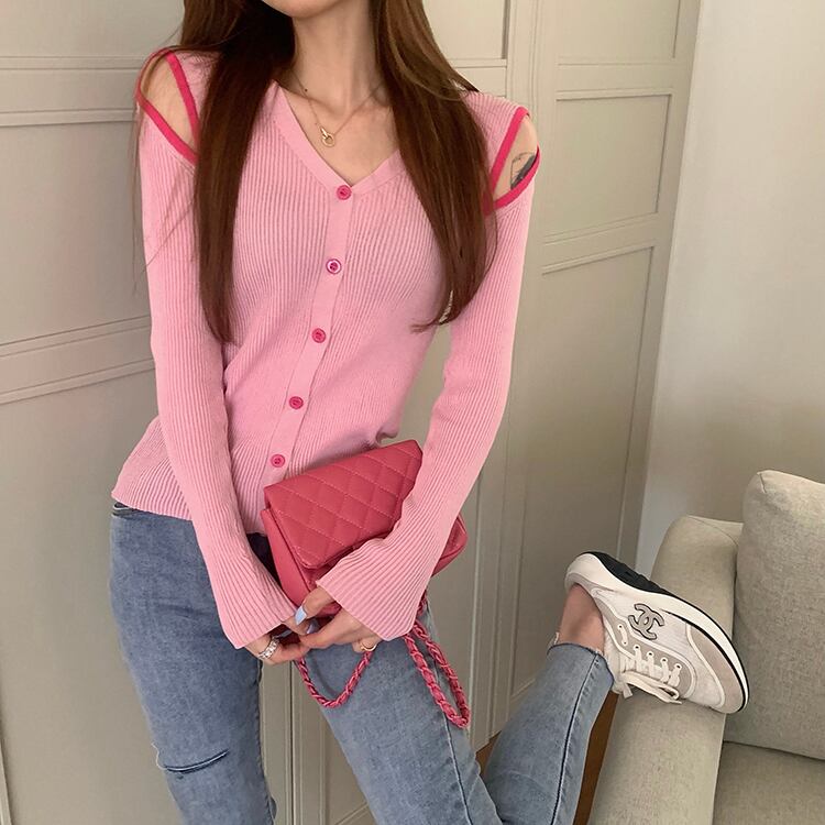 セーター スタイルカラーVネックストラップレスニットカーディガンスプリングトップス コート 春物 香港の味54282402069