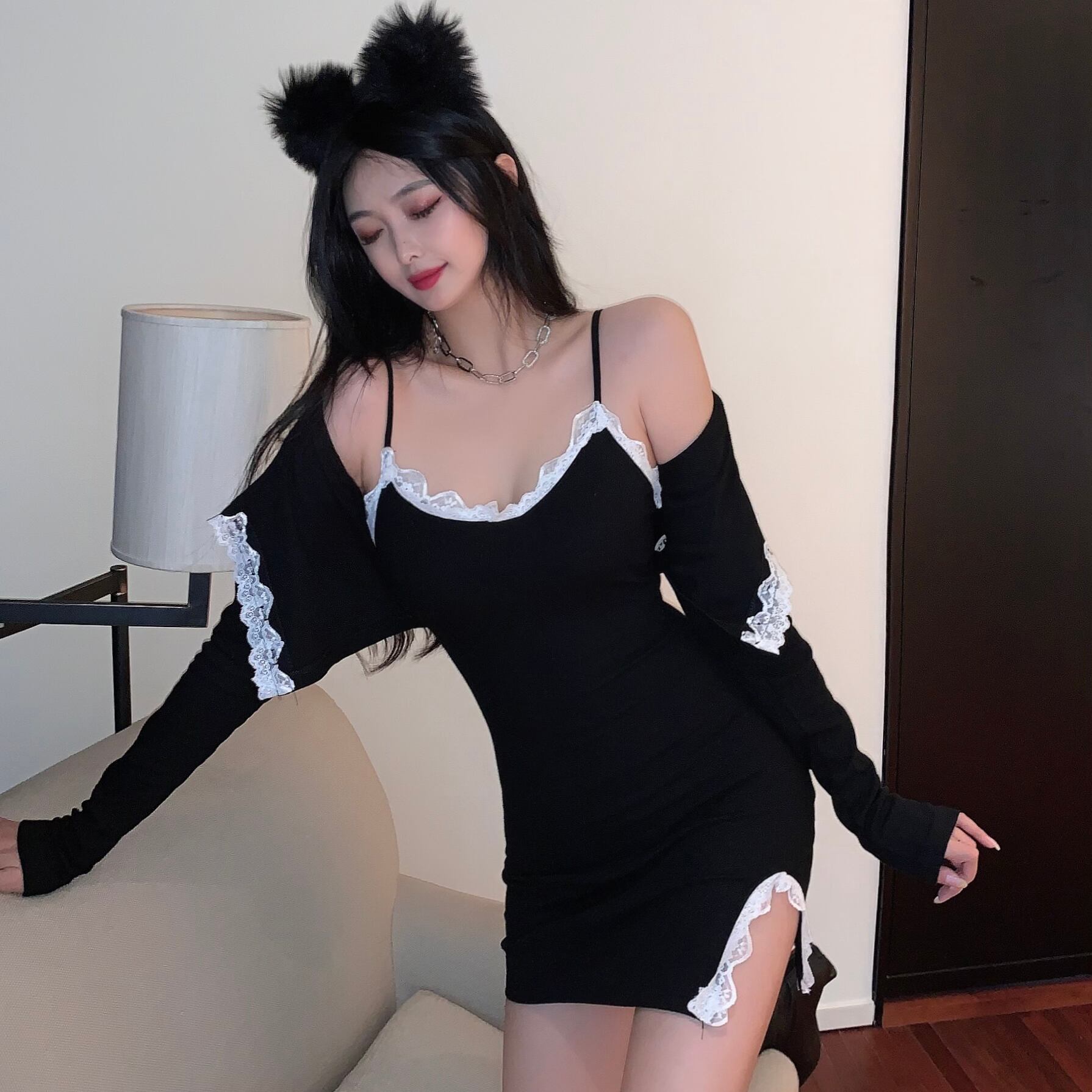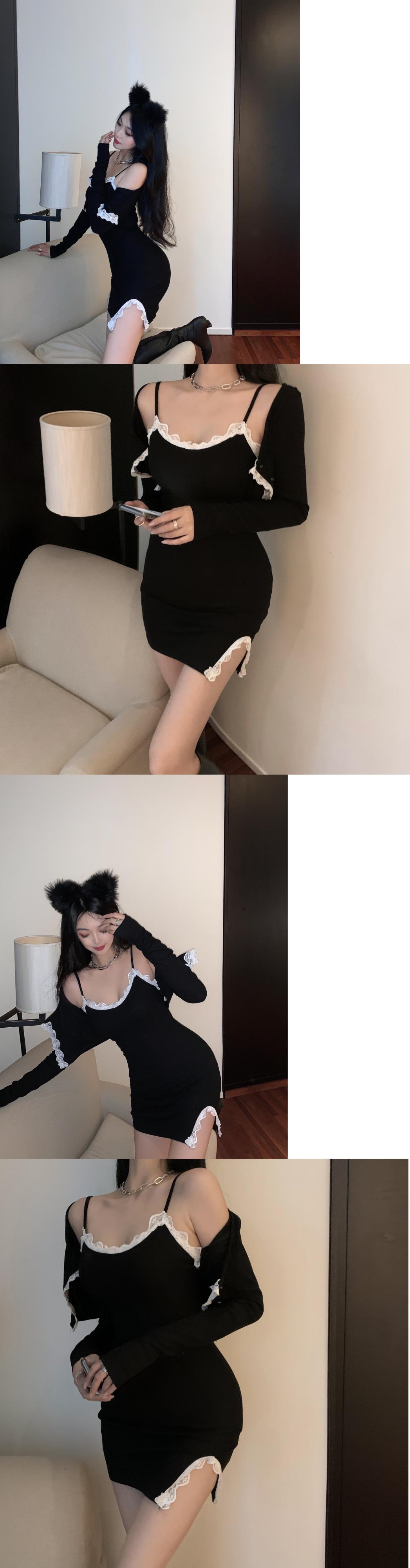 スプリングレースショートカーディガンスカート ロング 春物 香港の味42908018581