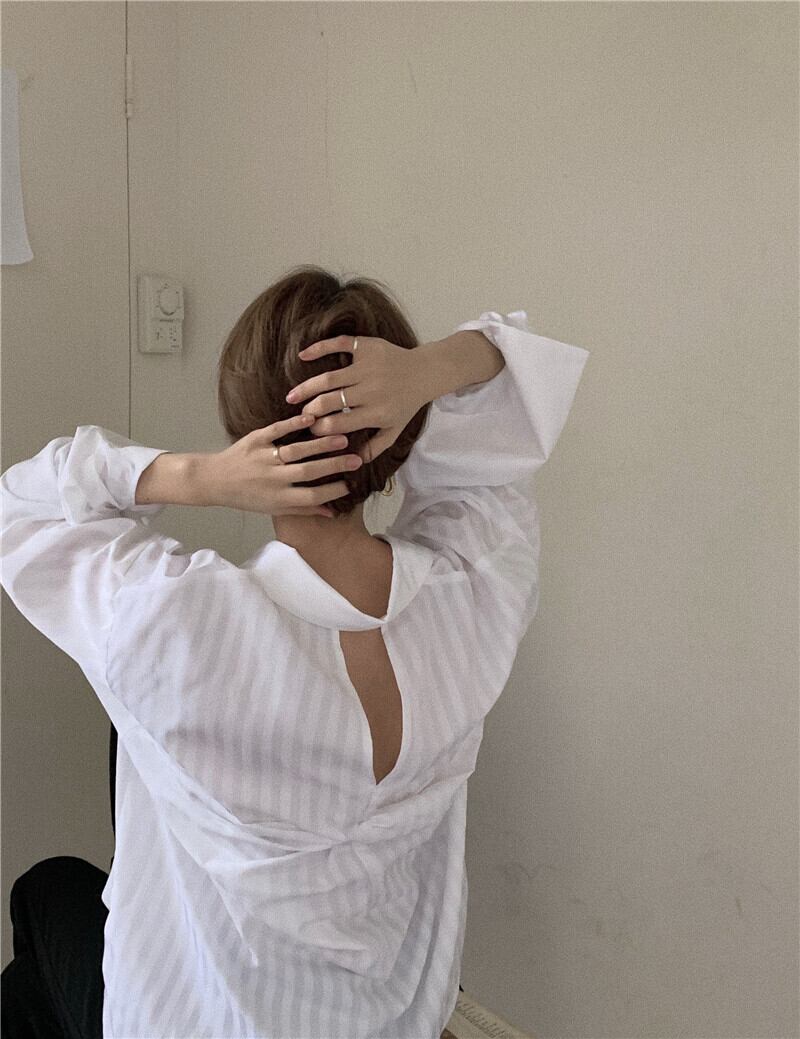 ホワイトシャツ スタイルストライプルーズカーディガンスプリングトップス コート 春物 香港の味85812748577