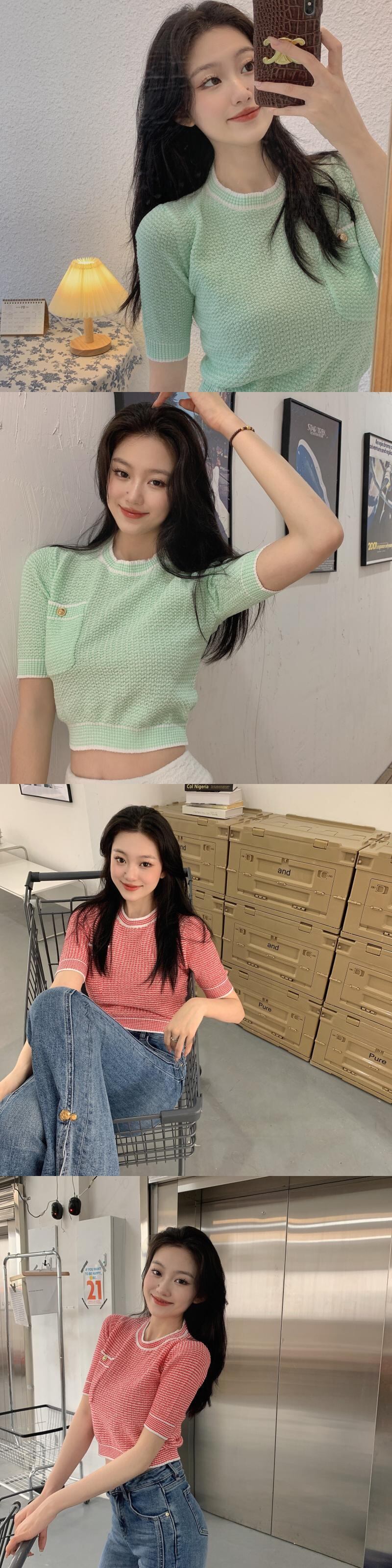 スプリングTシャツ シャツ スタンダードニットショートトップス レトロ 大人ガーリー スウィート キュート カジュアル 春物 香港の味1599726061