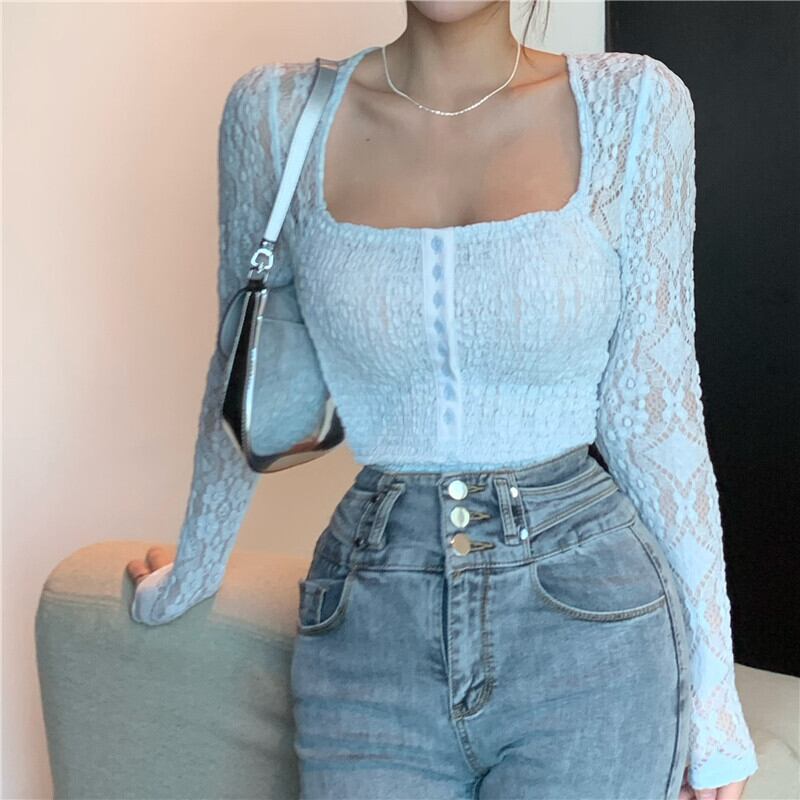 レースシャツ レディーススタンダードカラー長袖スリーブスプリングブラウス ロング レトロ 春物 スクウェア 香港の味91382326929
