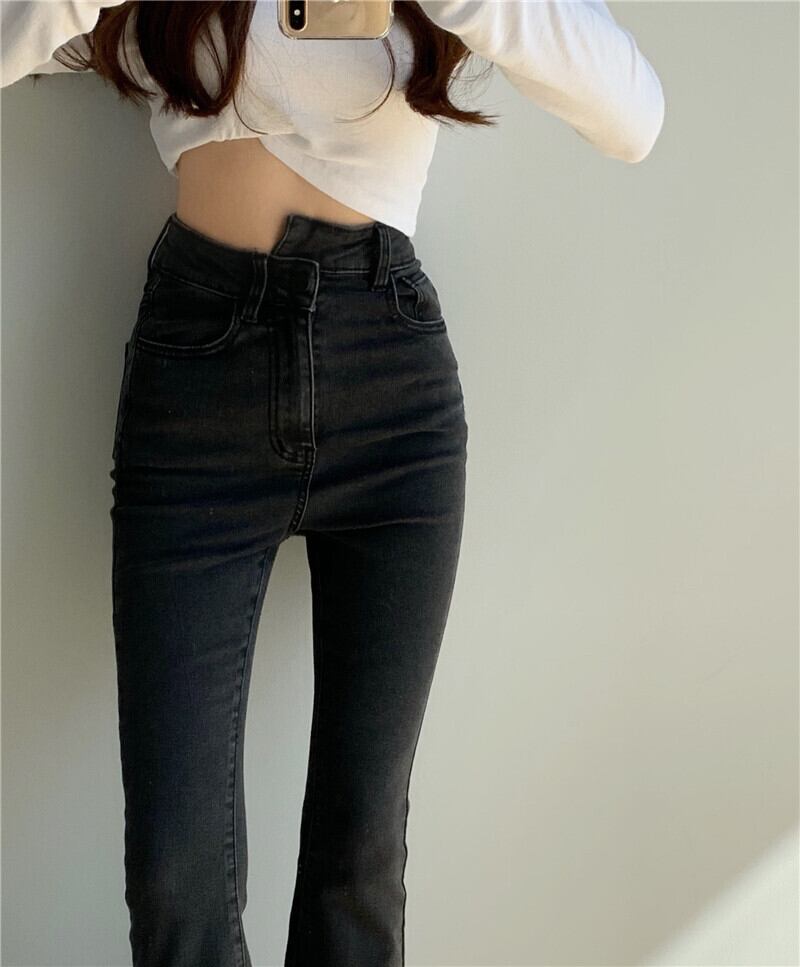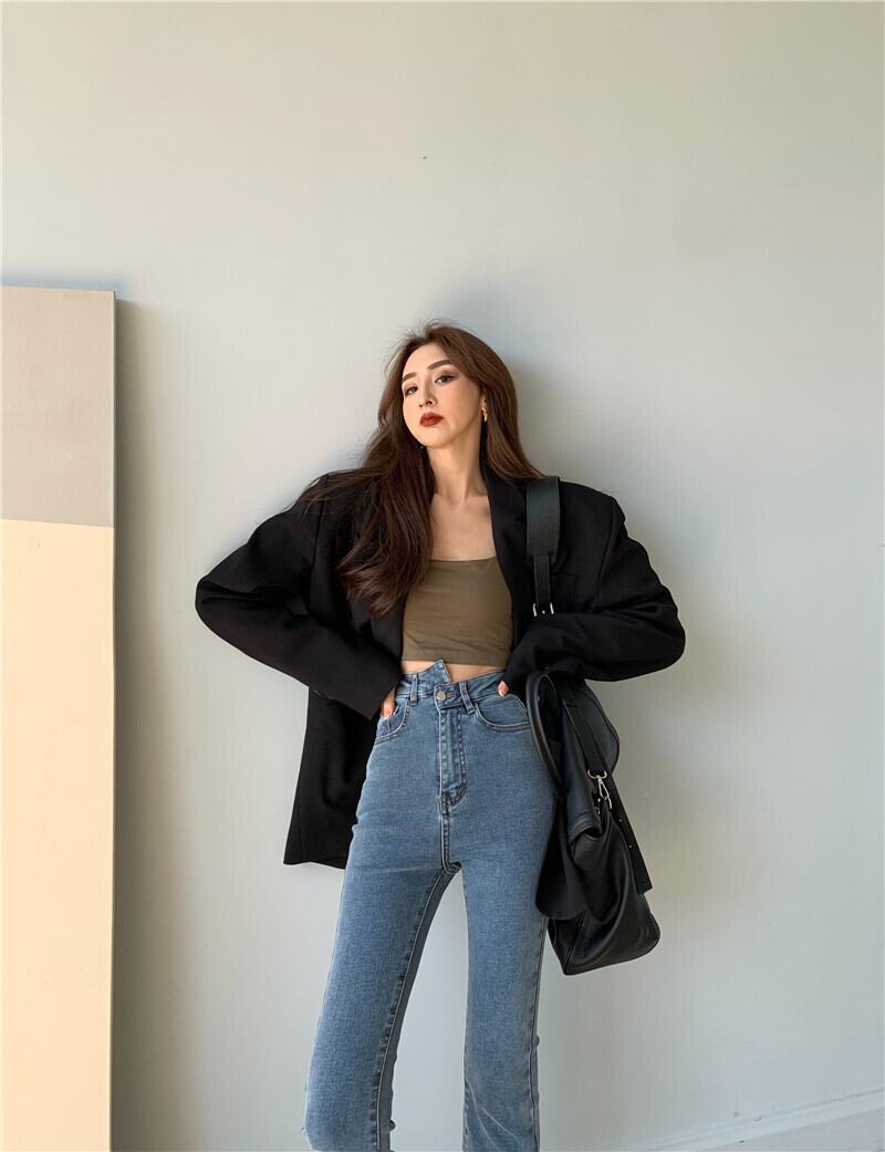 ジーンズ レディーススプリングハイウェストウェストスタンダードスリムパンツ レトロ 春物 香港の味40842252931