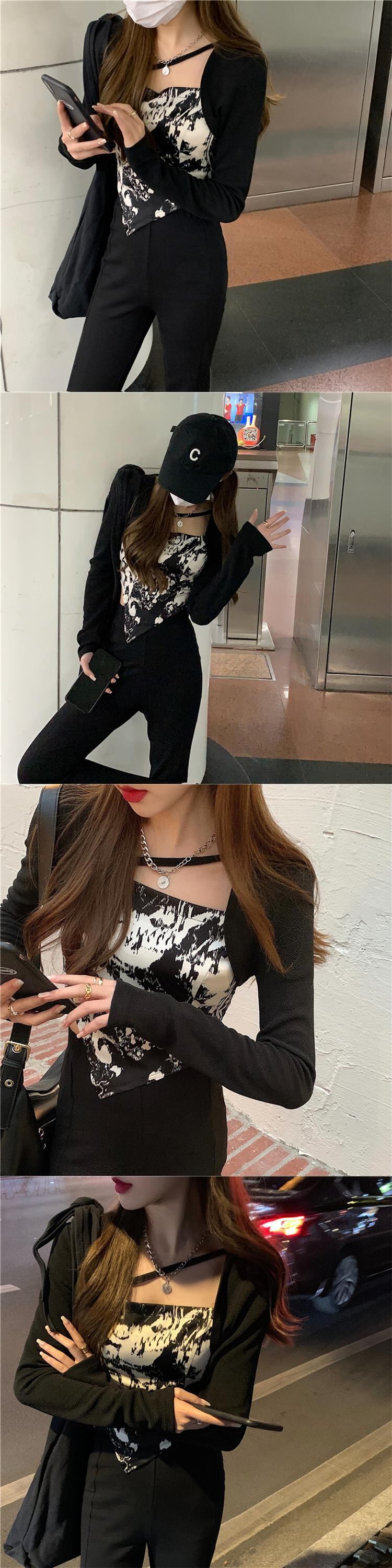 Tシャツ シャツ ツーピーススプリングショートトップス ロング 大人ガーリー スウィート キュート カジュアル 春物 香港の味47279198935