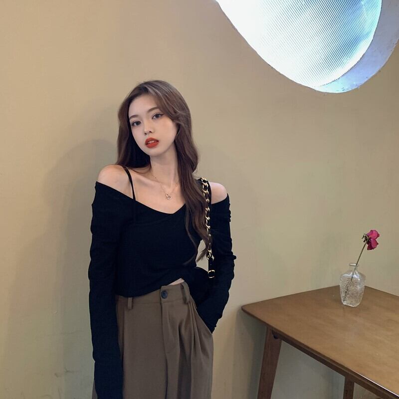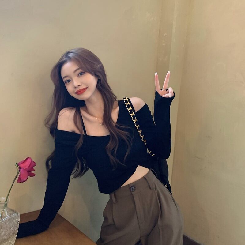 トップス スプリング薄手ショートブラックシャツ Tシャツ ロング 春物 香港の味83949019193