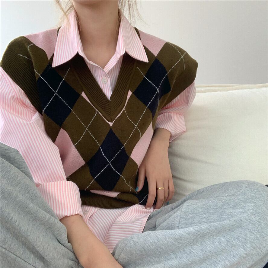 ニットスタンダードカラールーズノースリーブスプリングジャケット レトロ 春物 香港の味31457351213