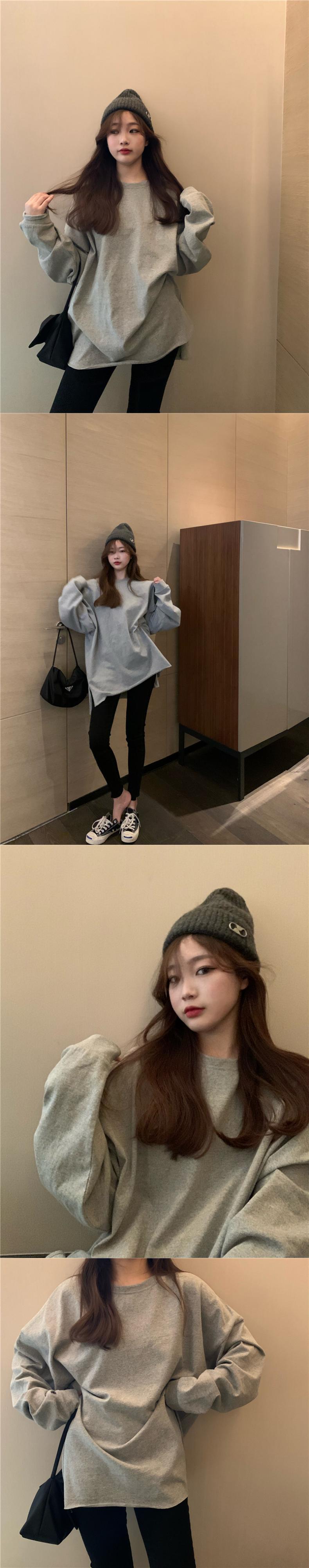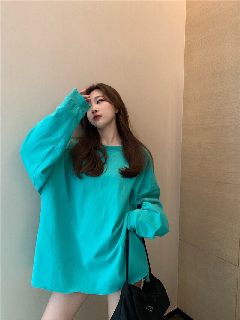 Tシャツ シャツ スタイルソリッド カラーラウンドネックスプリングルーズトップス ロング 春物 Oネック ソリッドカラー 香港の味68522152861