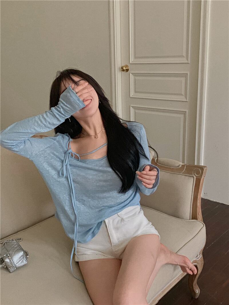 Tシャツ シャツ サマールーズカジュアル薄手ブルートップス ロング 夏物 香港の味50652768775