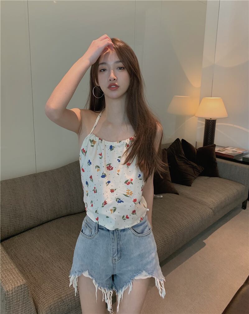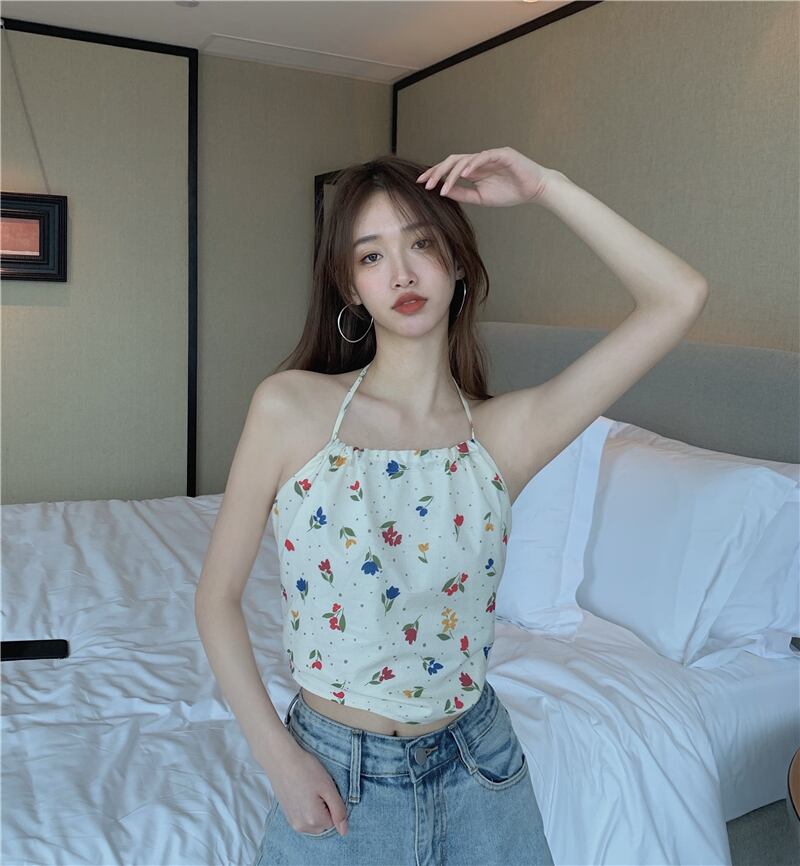 サマーギャザーホルターショートフローラルトップス レース 夏物 花柄 レースアップ ピュア 香港の味12763533796