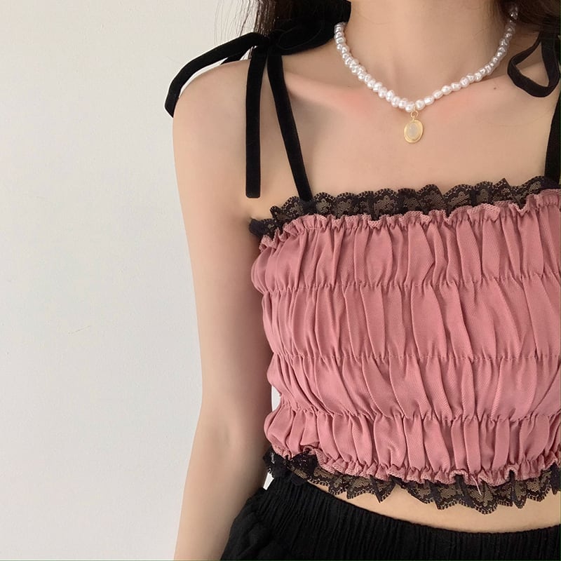 レディースレースサマーショートトップス ピンク 夏物 香港の味64155457713