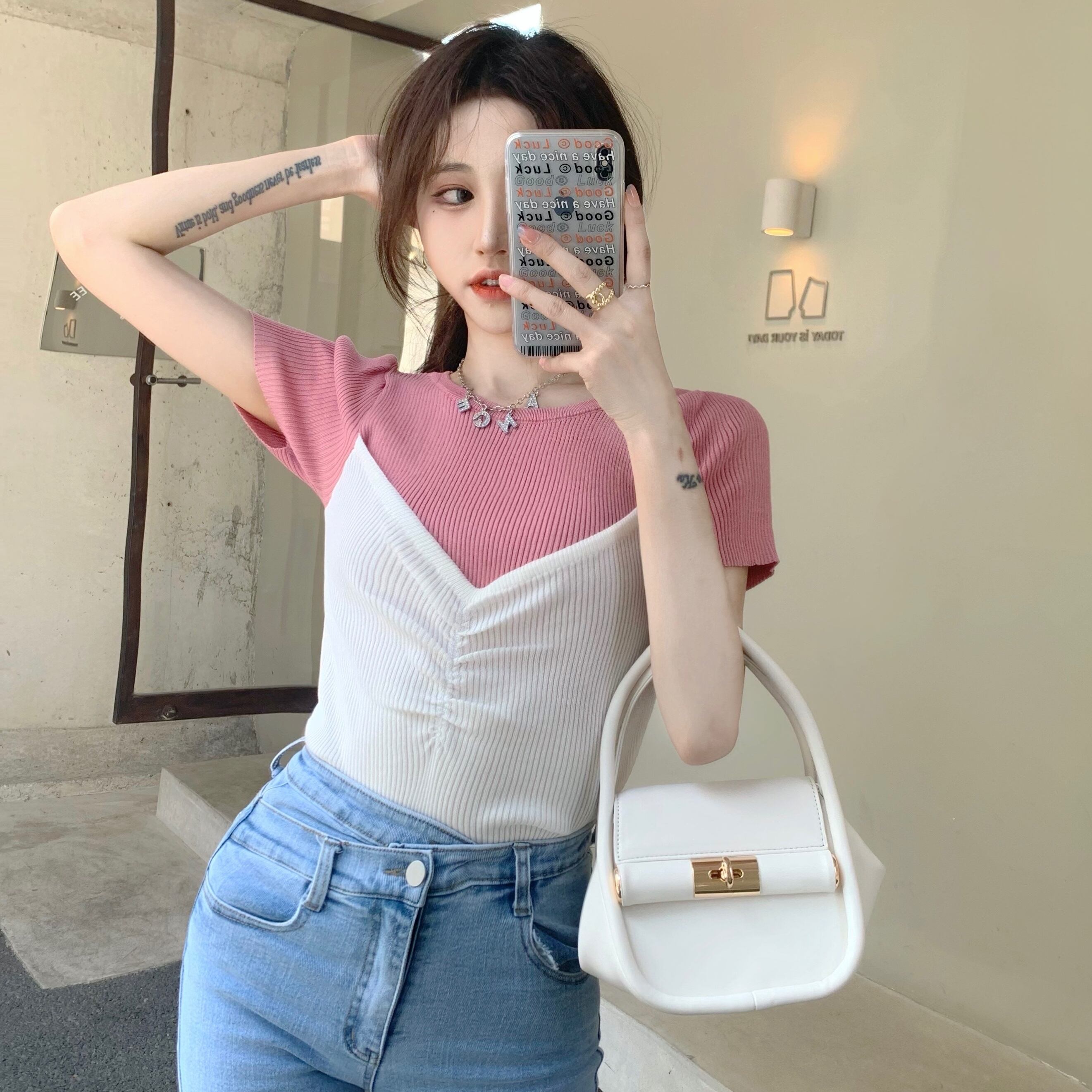 スリーブカラーニットトップス 香港の味96720637251