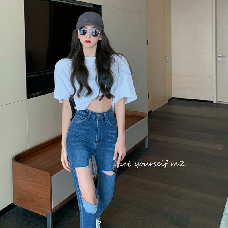ジーンズ ハイウェストスリムパンツ スプリングオータム 春物 秋物 香港の味19273453798
