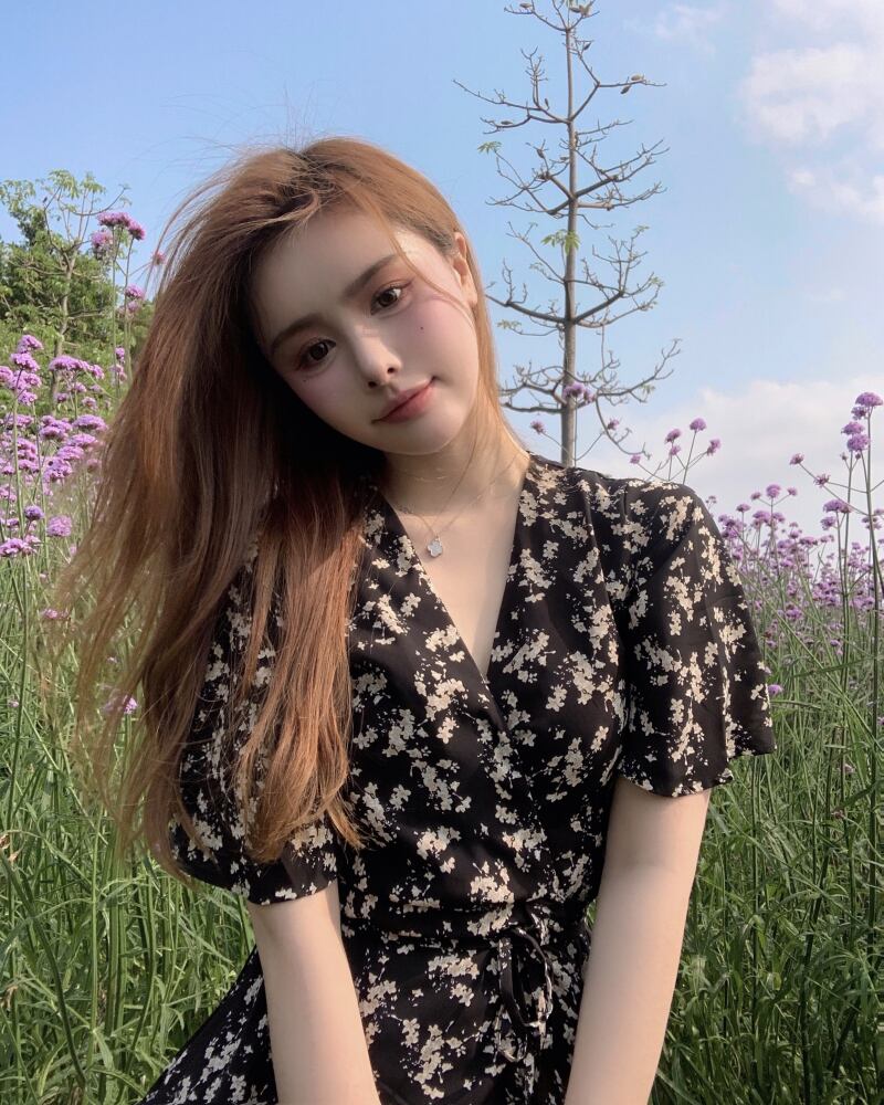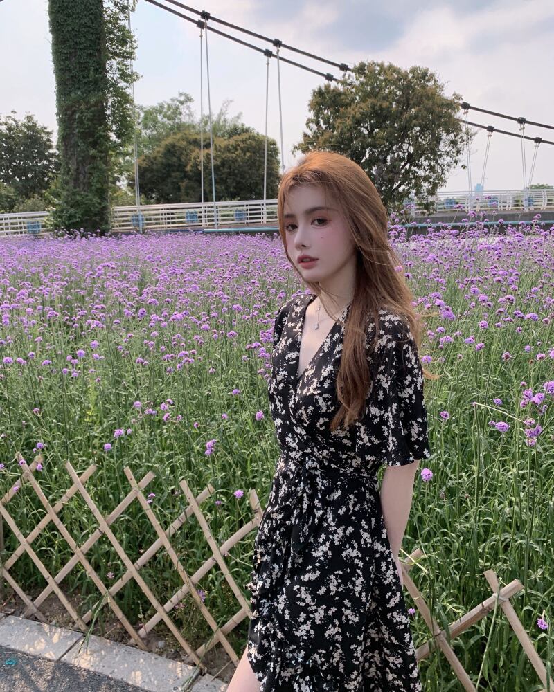 フローラルドレス サマーVネック薄手ウェストスタンダードスカート レトロ 夏物 花柄 香港の味21295689955