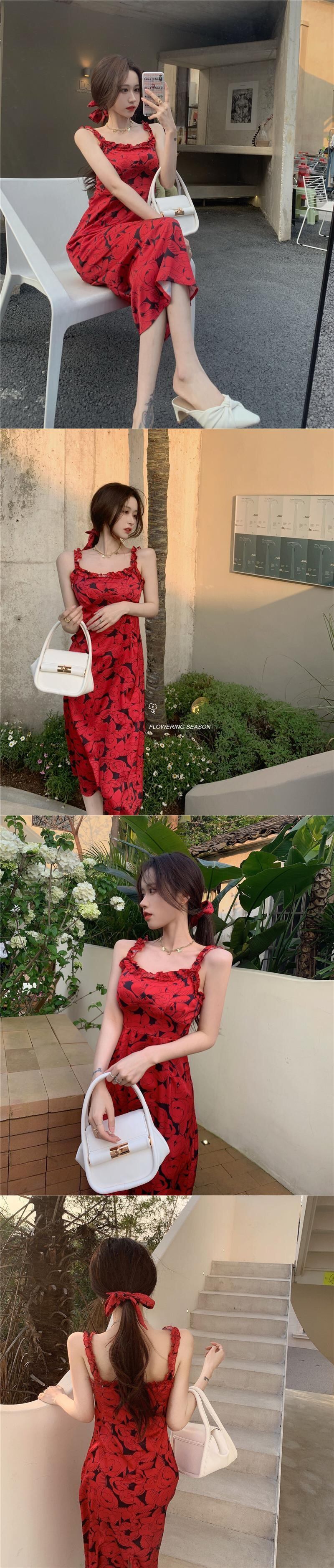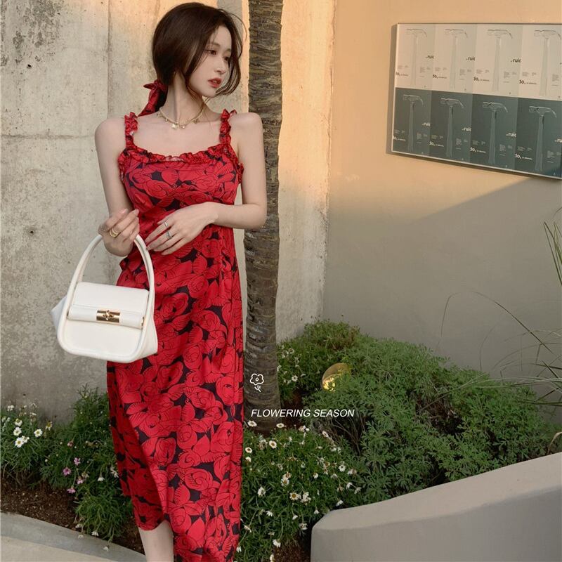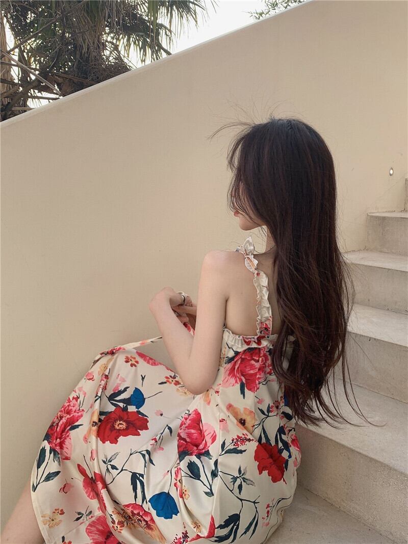 フローラルドレス スタンダードウェストロングスカート サマー薄手 レトロ 夏物 花柄 香港の味60570293594