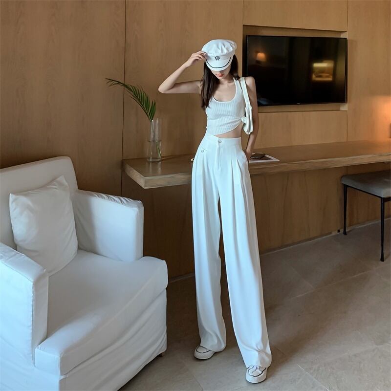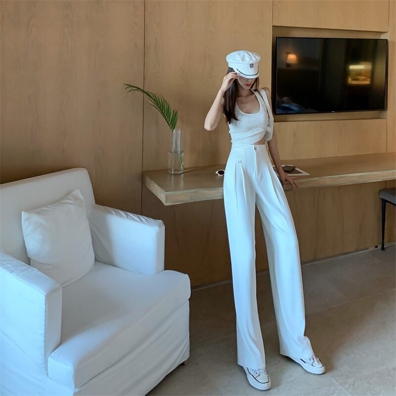 ホワイトパンツ サマーハイウェストウェスト薄手ルーズカジュアル 夏物 香港の味56800233871