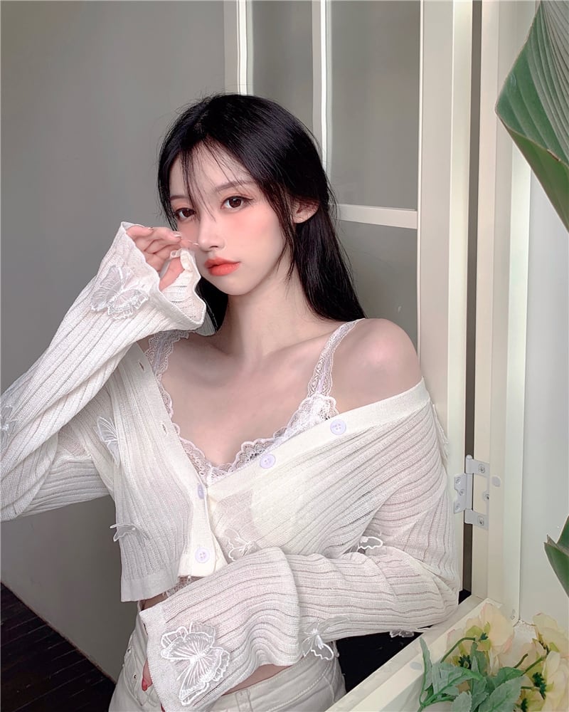 ニットセーター 薄手レディースサマーButterflyデザイン ショートカーディガントップス ロング 夏物 香港の味53268242781