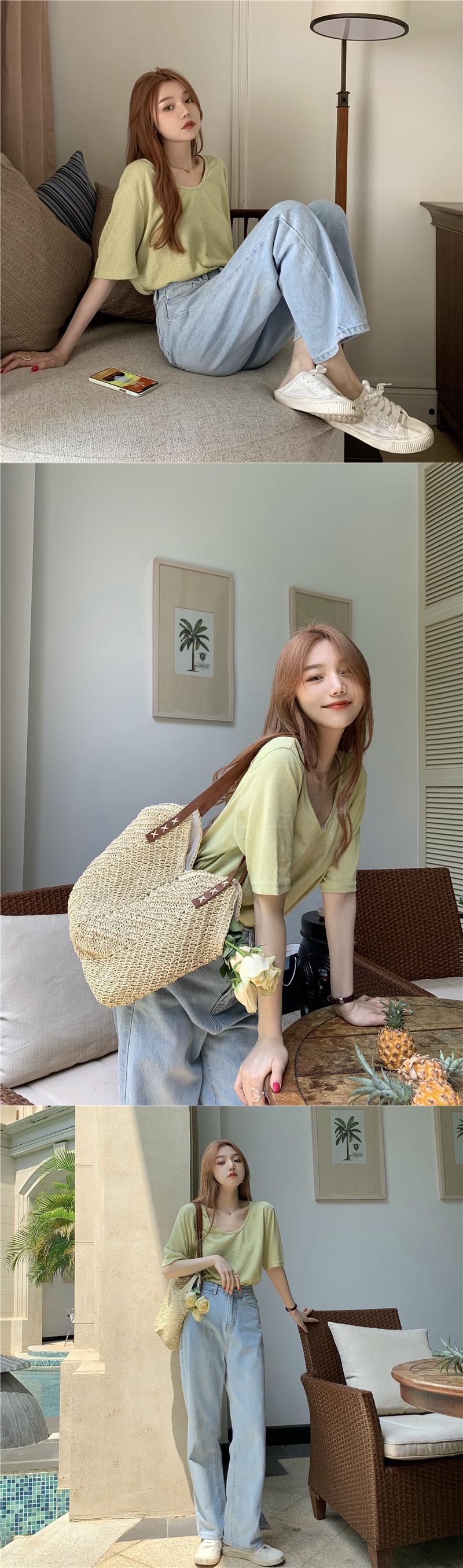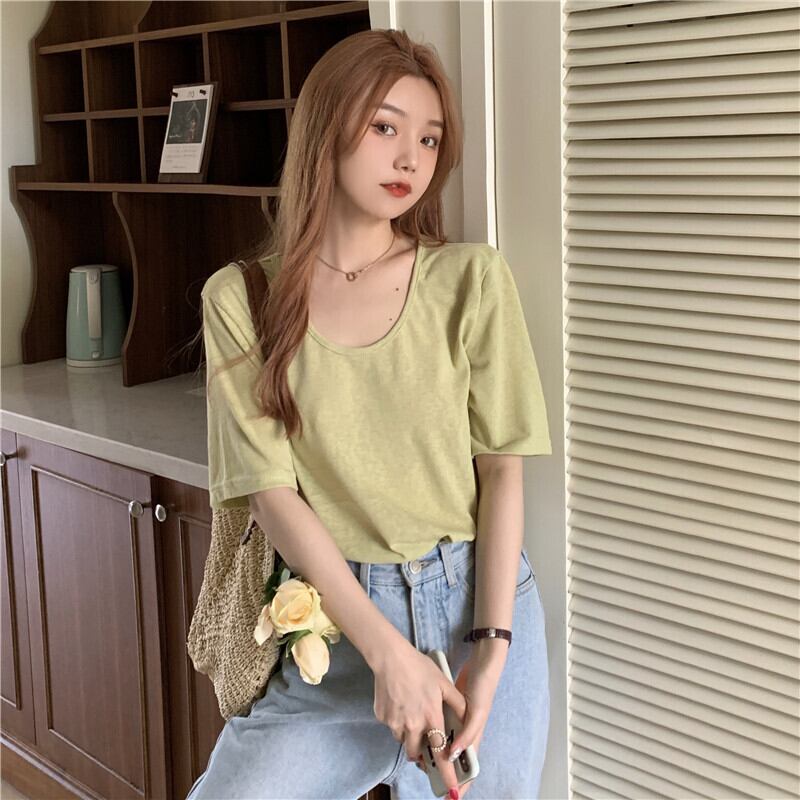 Tシャツ ベーシックサマーソリッド カラールーズ薄手レッドトップス 夏物 ソリッドカラー 香港の味53010945636