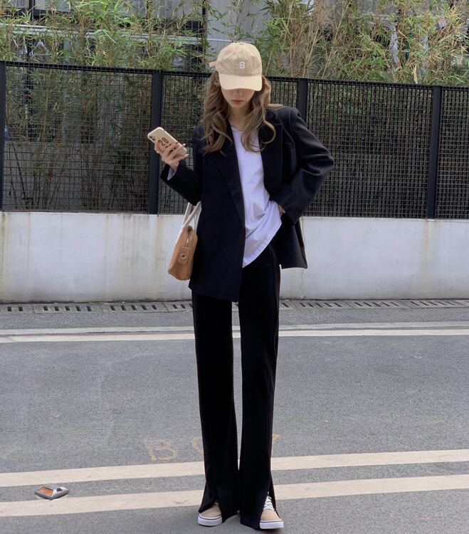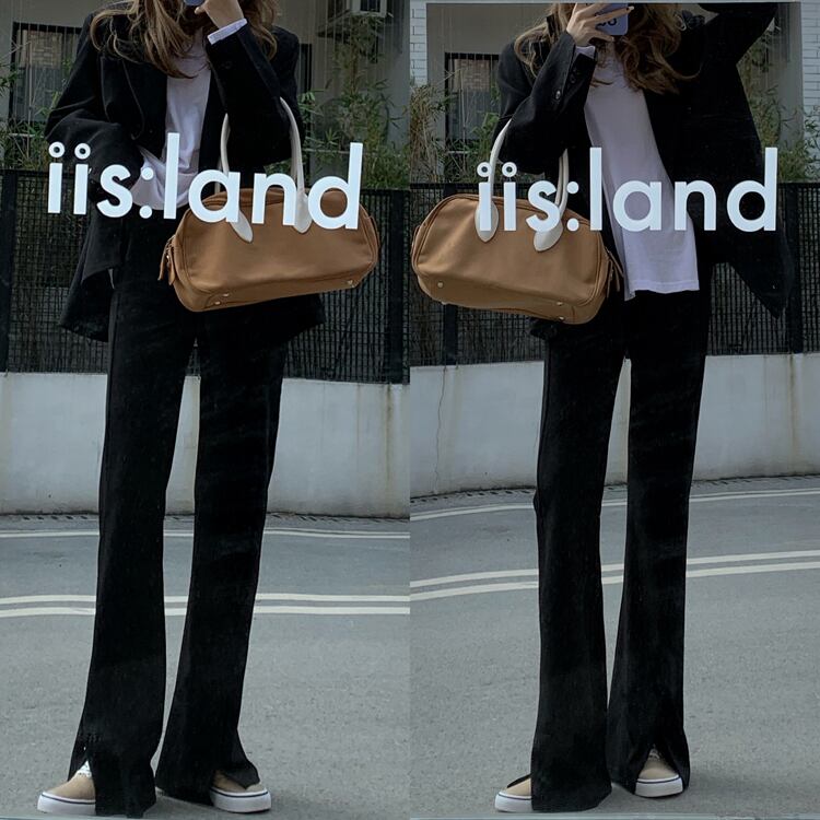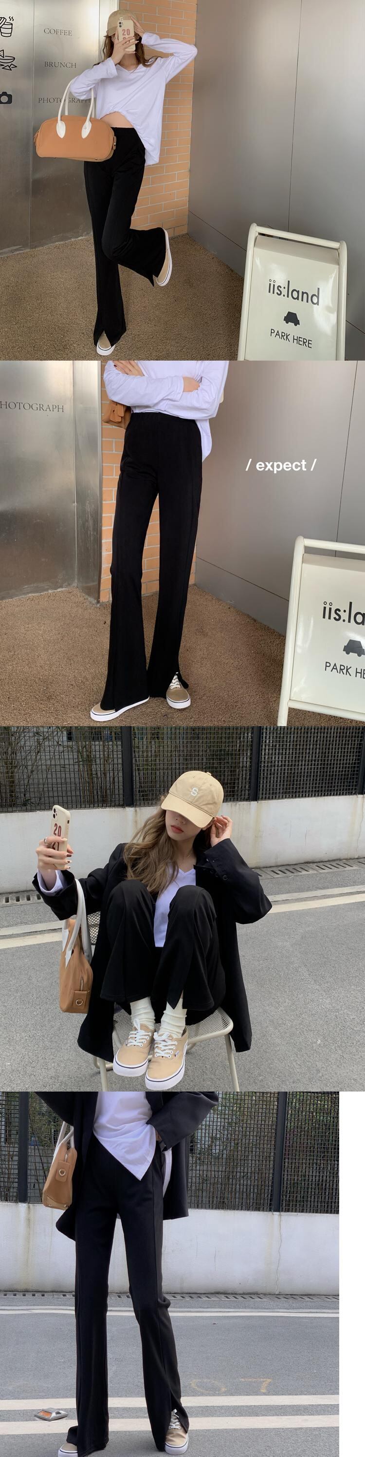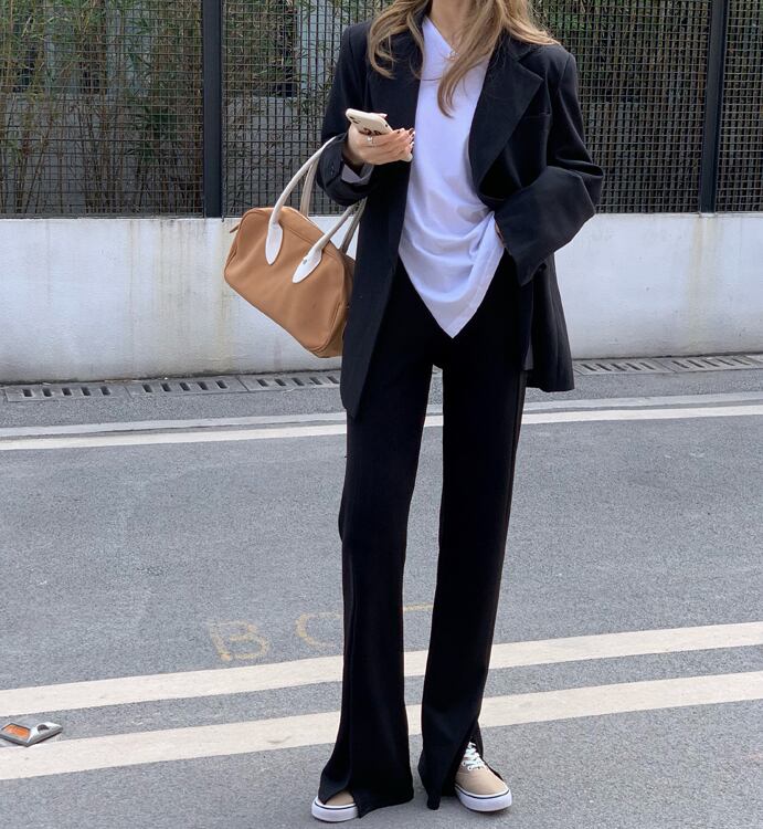 スリットパンツ レディースサマーカジュアルブラック ハイウェスト 夏物 香港の味46798241585
