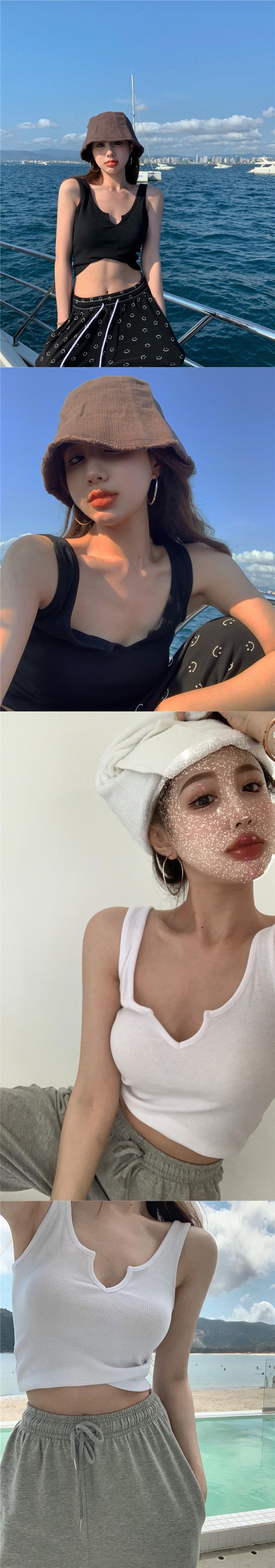 サマーVネックショートソリッド スリムトップス 夏物 ソリッドカラー 香港の味4176948002